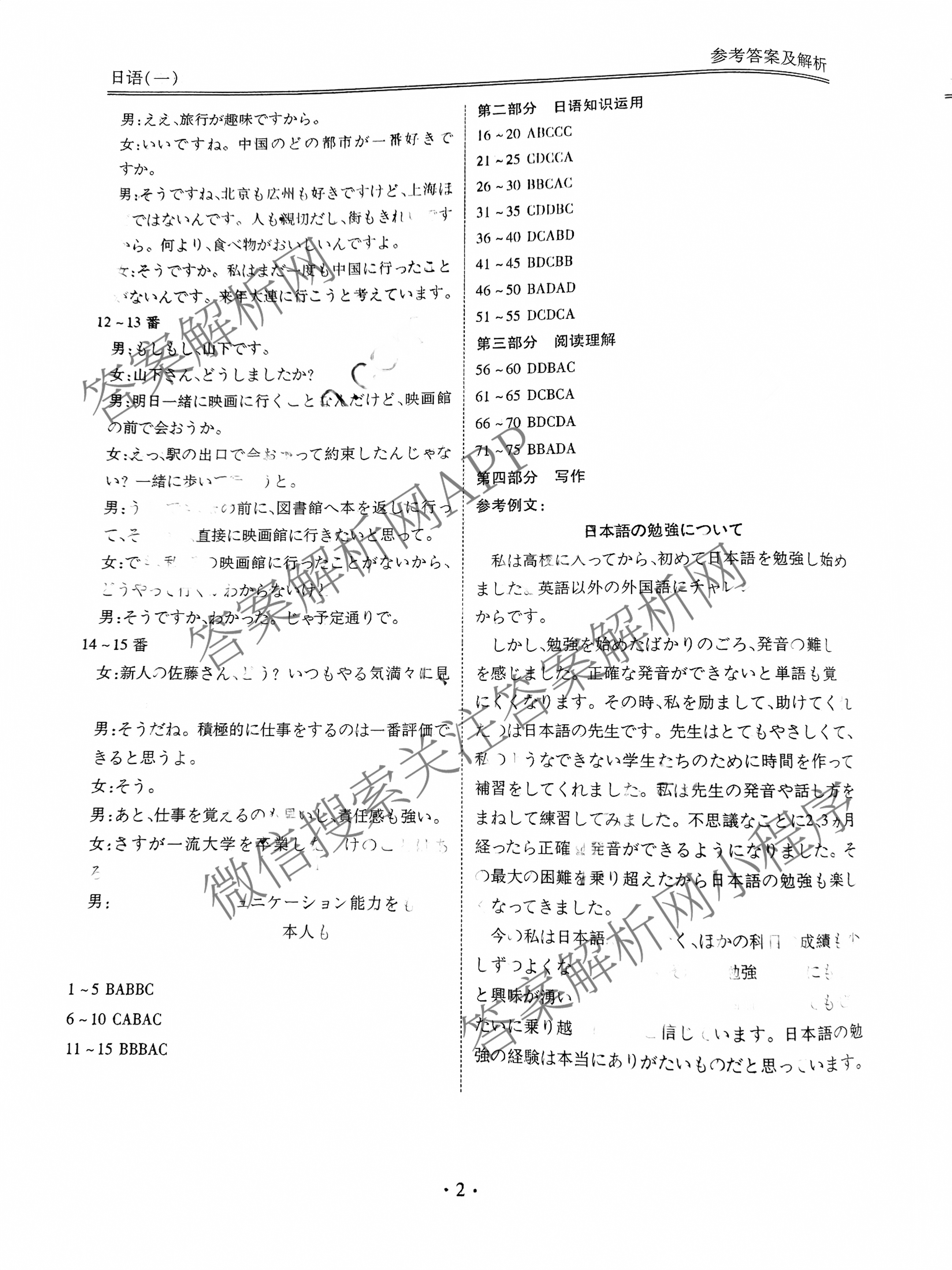 [衡水金卷先享题]调研卷 2024年普通高等学校招生全国统一考试模拟试题(一)1日语答案