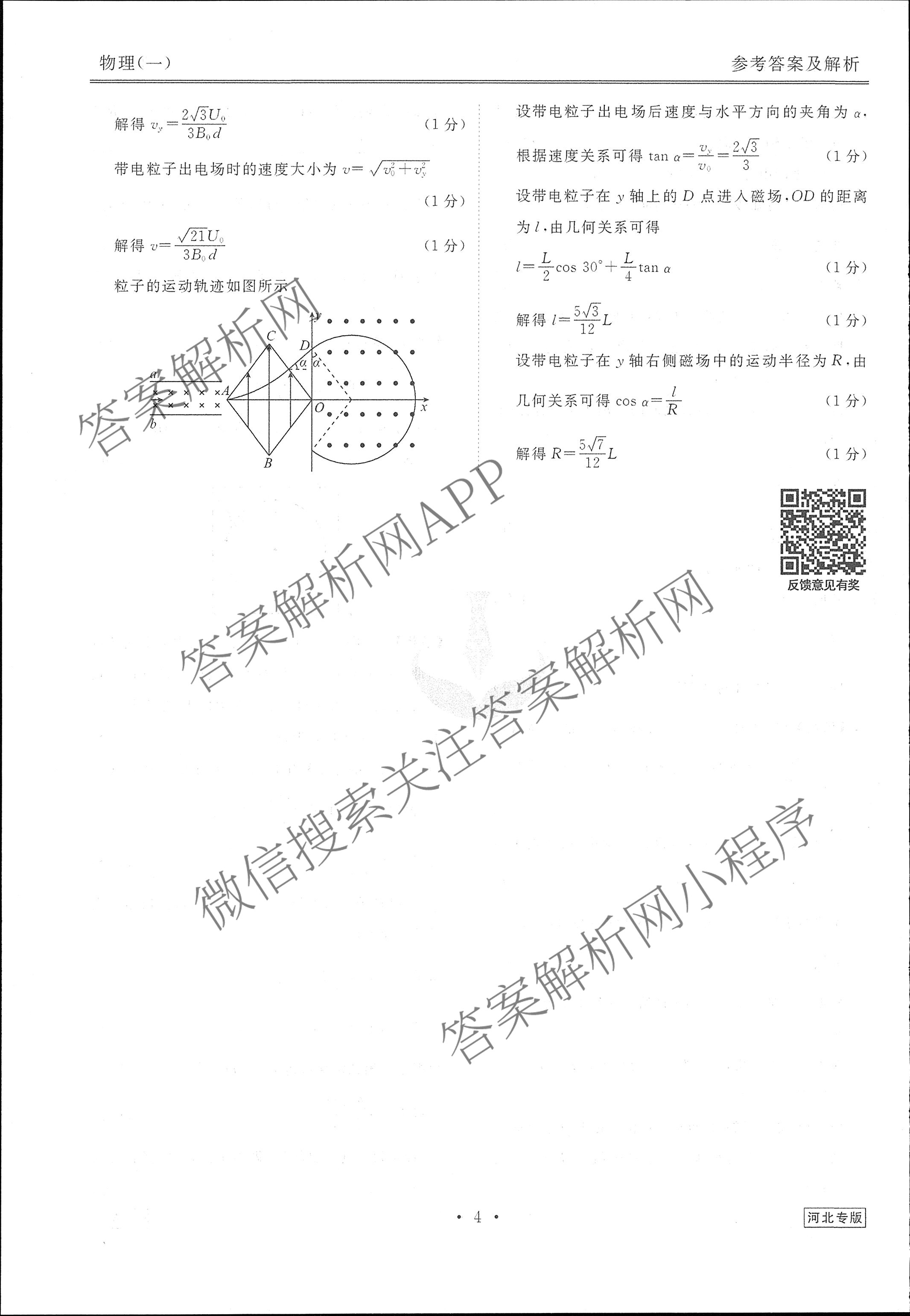 (衡水金卷先享题)调研卷 2024年普通高中学业水平选择性考试模拟试题(一)1物理(河北专版)答案