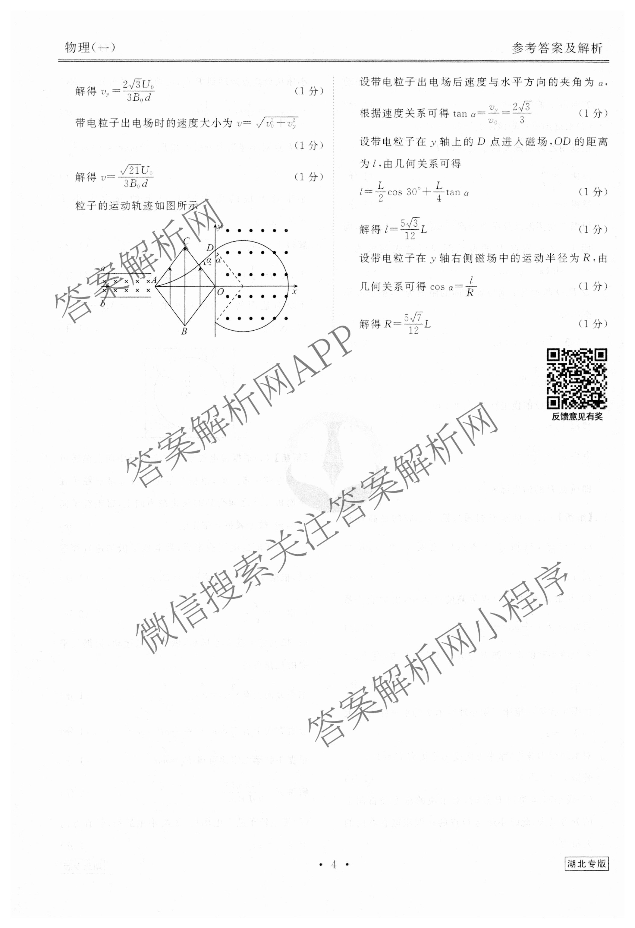 (衡水金卷先享题)调研卷 2024年普通高中学业水平选择性考试模拟试题(一)1物理(湖北专版)答案