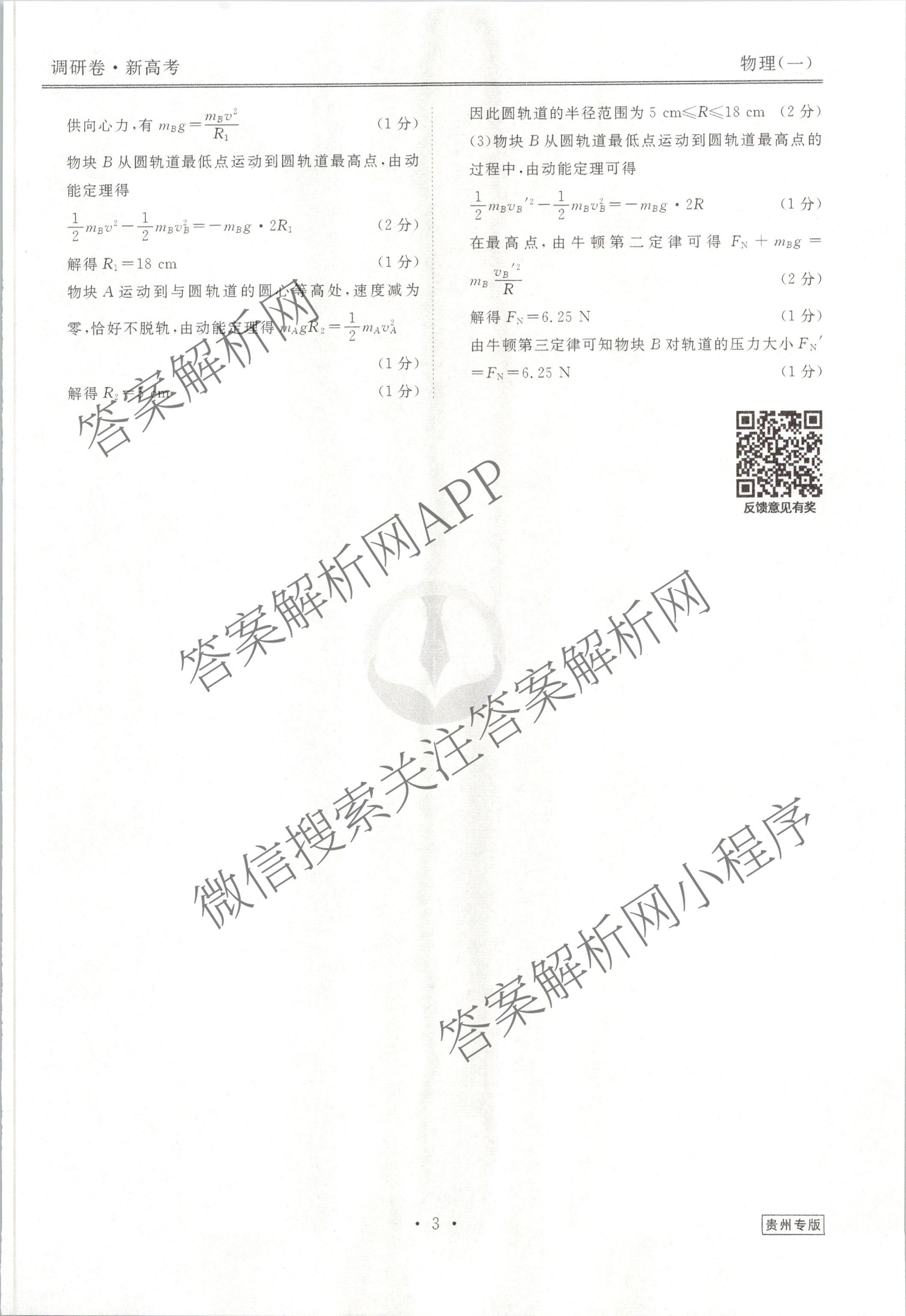 高三(衡水金卷先享题)·调研卷 2024年普通高中学业水平选择性考试模拟试题(一)1物理(贵州专版)答案