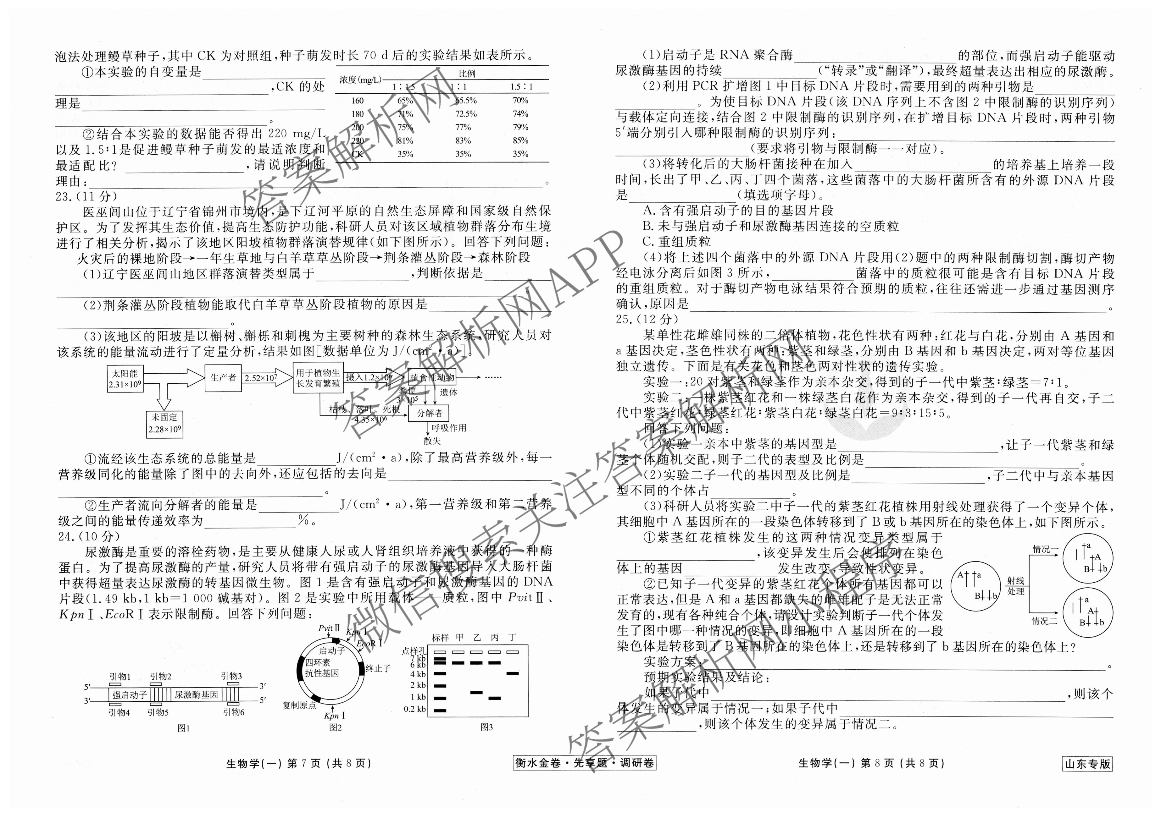 衡水金卷先享题·调研卷 2024年普通高中学业水平选择性考试模拟试题(一)1生物(山东专版)试题,目前衡水金卷先享题答案网已经汇总了衡水金卷先享题·调研卷 2024年普通高中学业水平选择性考试模拟试题(一)1生物(山东专版)试题的各科答案和试卷,获取更多衡水金卷先享题答案解析,请在关注本站。