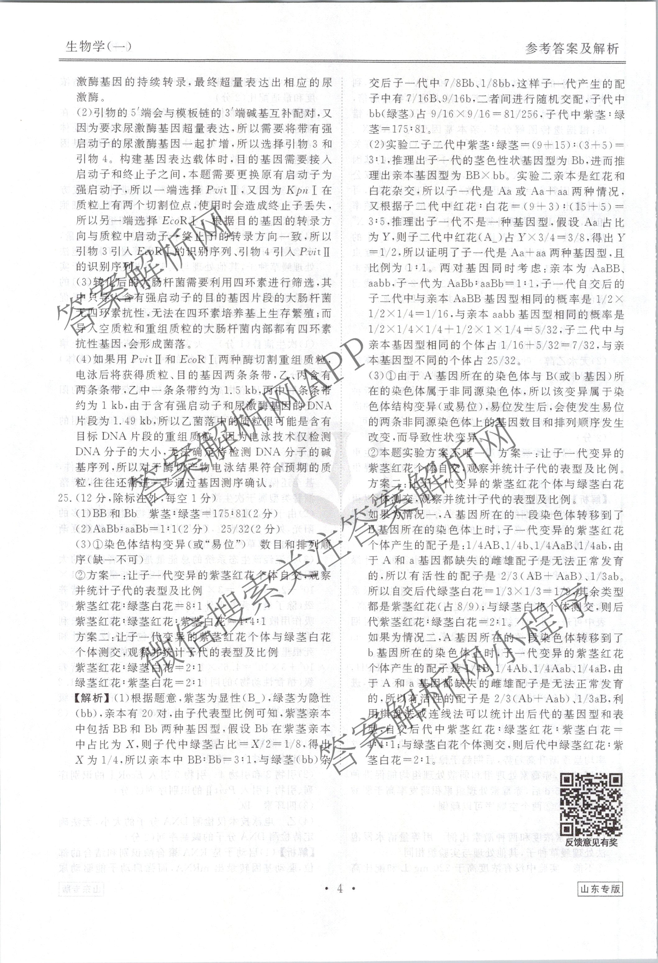 [衡水金卷先享题]调研卷 2024年普通高中学业水平选择性考试模拟试题(一)1生物(山东专版)答案