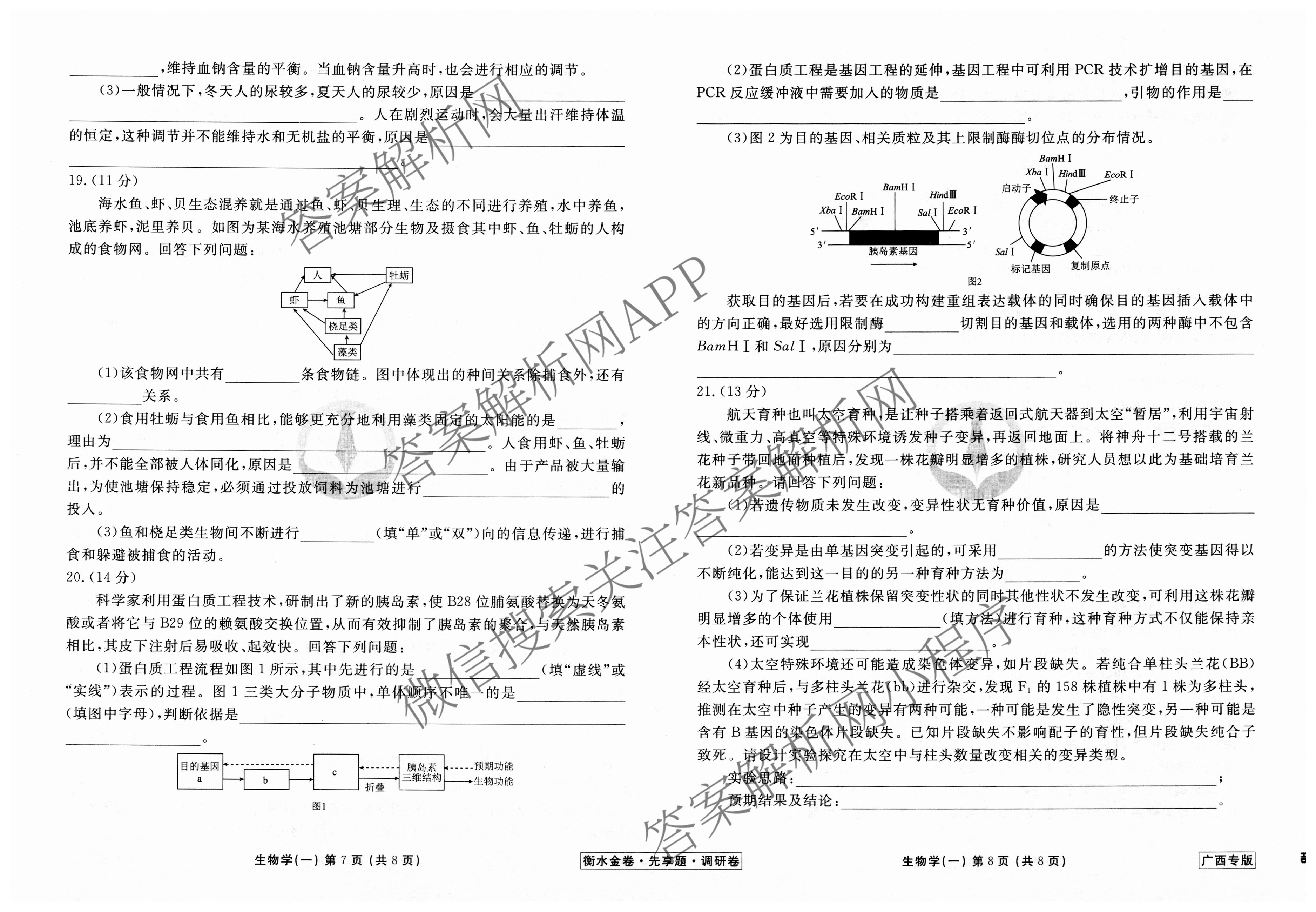 衡水金卷先享题·调研卷 2024年普通高中学业水平选择性考试模拟试题(一)1生物(广西专版)试题,目前衡水金卷先享题答案网已经汇总了衡水金卷先享题·调研卷 2024年普通高中学业水平选择性考试模拟试题(一)1生物(广西专版)试题的各科答案和试卷,获取更多衡水金卷先享题答案解析,请在关注本站。