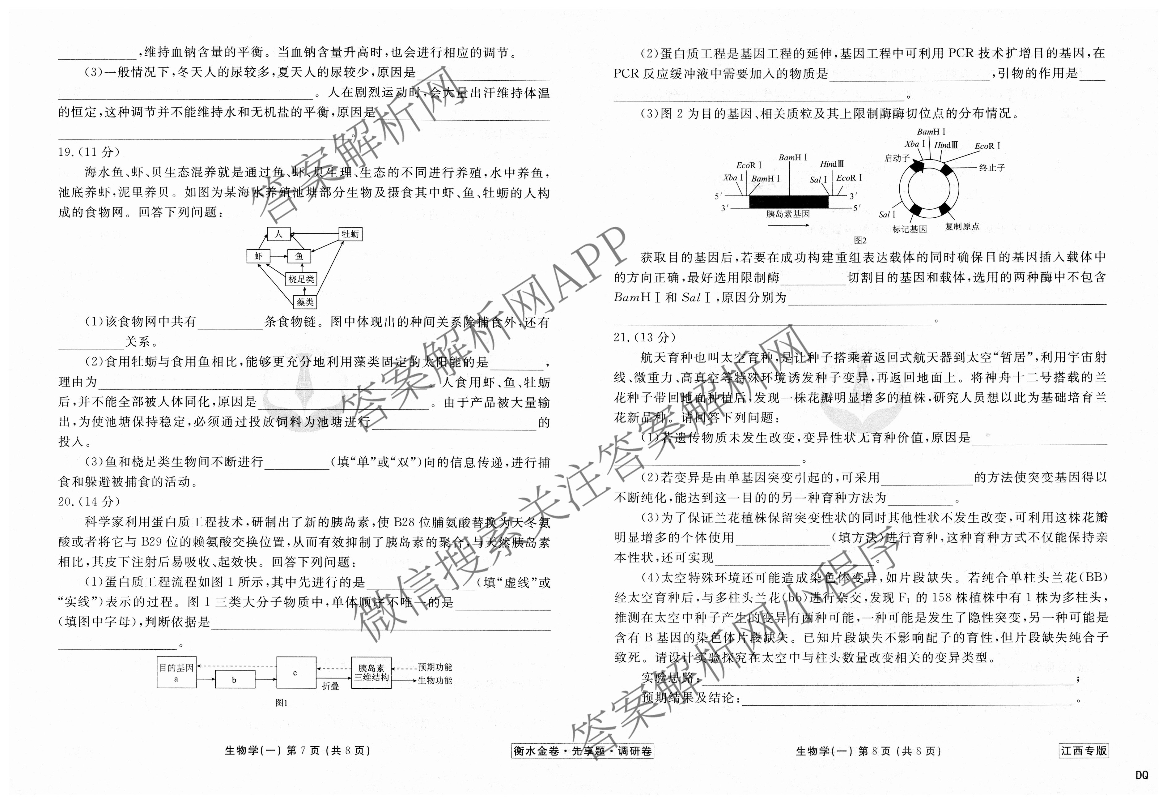 衡水金卷先享题·调研卷 2024年普通高中学业水平选择性考试模拟试题(一)1生物(江西专版)试题,目前衡水金卷先享题答案网已经汇总了衡水金卷先享题·调研卷 2024年普通高中学业水平选择性考试模拟试题(一)1生物(江西专版)试题的各科答案和试卷,获取更多衡水金卷先享题答案解析,请在关注本站。
