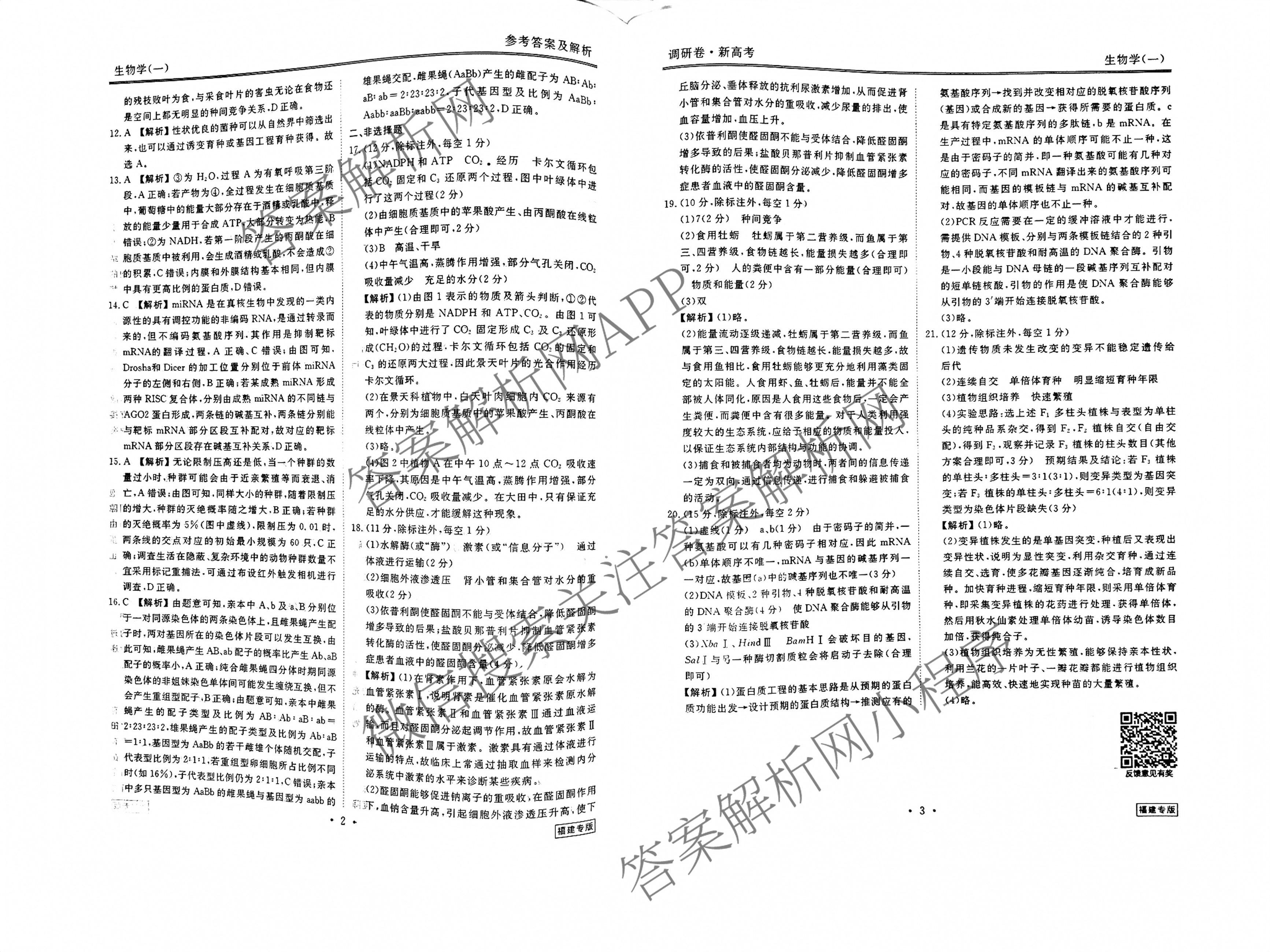 (衡水金卷先享题)调研卷 2024年普通高中学业水平选择性考试模拟试题(一)1生物(福建专版)答案