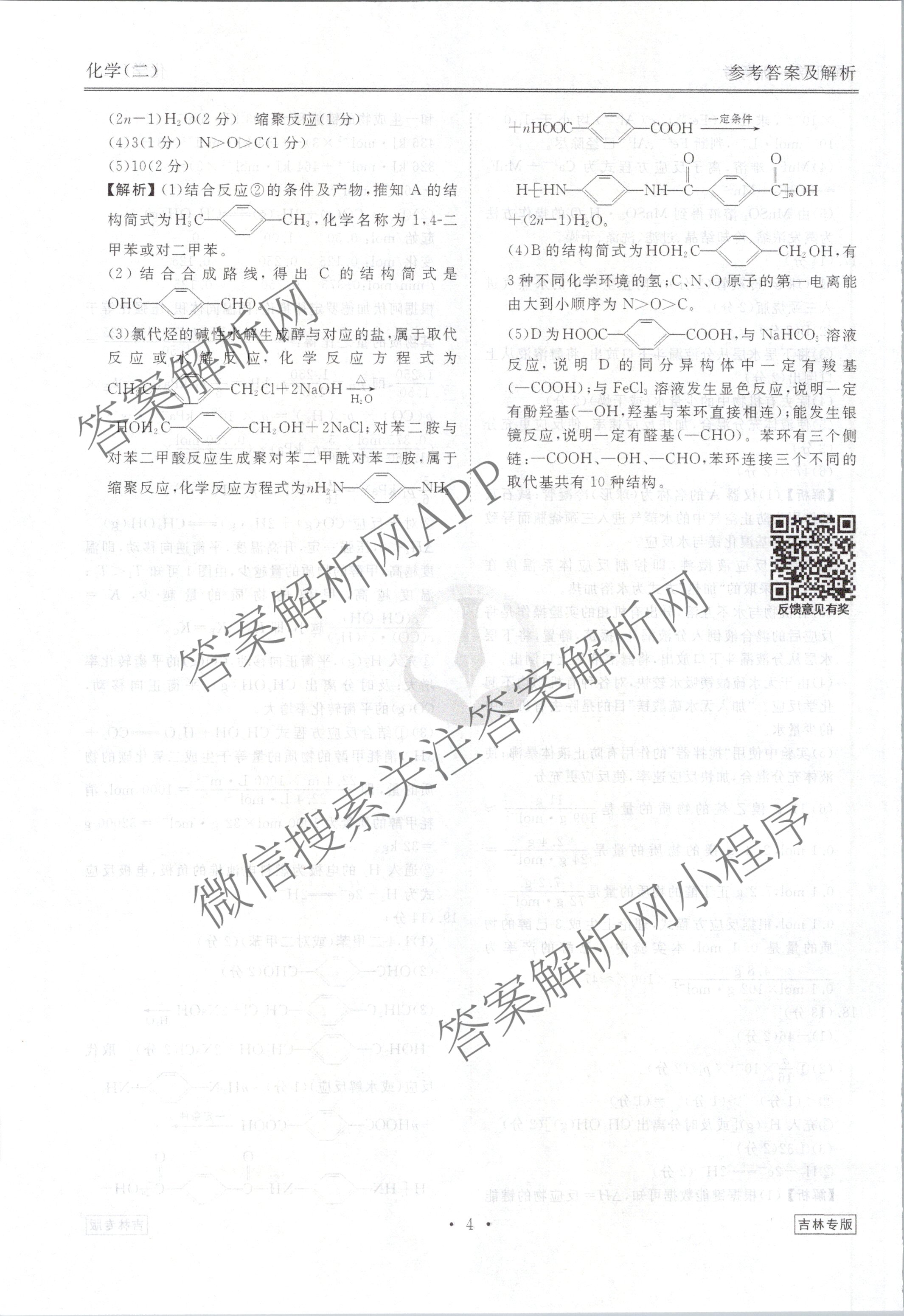 - (高三)[衡水金卷先享题]调研卷 2024年普通高中学业水平选择性考试模拟试题(二)2化学(吉林专版)答案