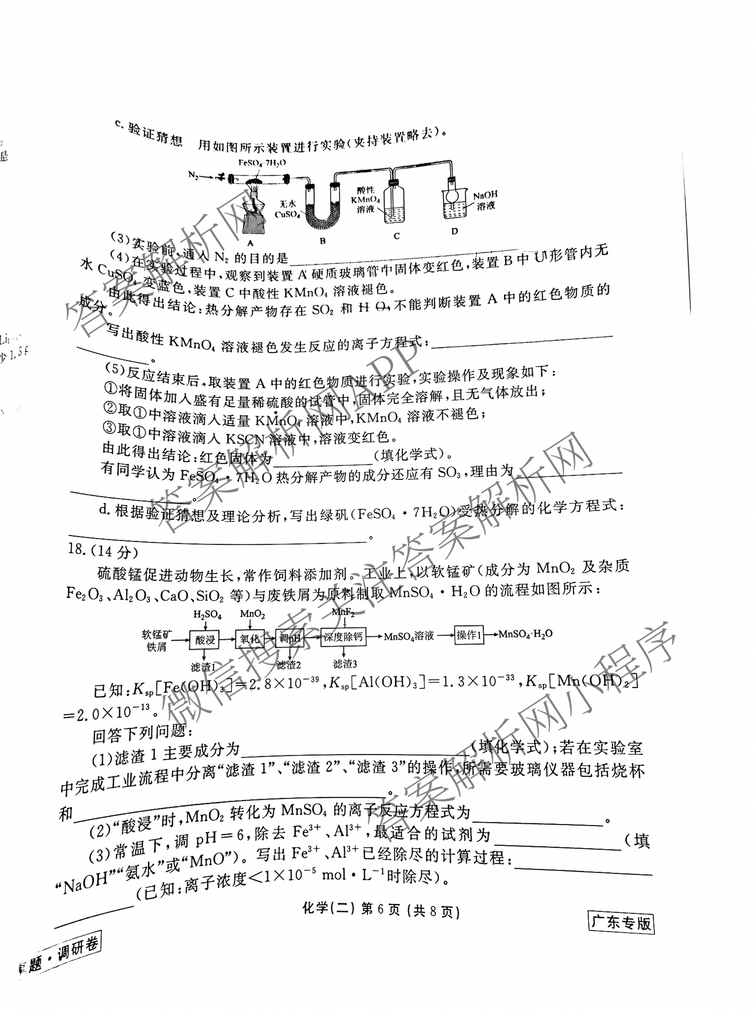 衡水金卷先享题·调研卷2024年普通高中学业水平选择性考试模拟试题(二)2化学(广东专版)试题,目前衡水金卷先享题答案网已经汇总了衡水金卷先享题·调研卷2024年普通高中学业水平选择性考试模拟试题(二)2化学(广东专版)试题的各科答案和试卷,获取更多衡水金卷先享题答案解析,请在关注本站。