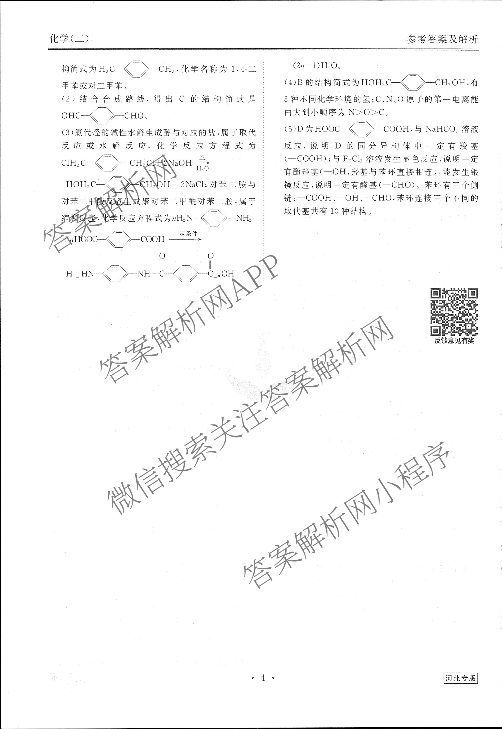 - [高三]衡水金卷先享题·调研卷 2024年普通高中学业水平选择性考试模拟试题(二)2化学(河北专版)答案