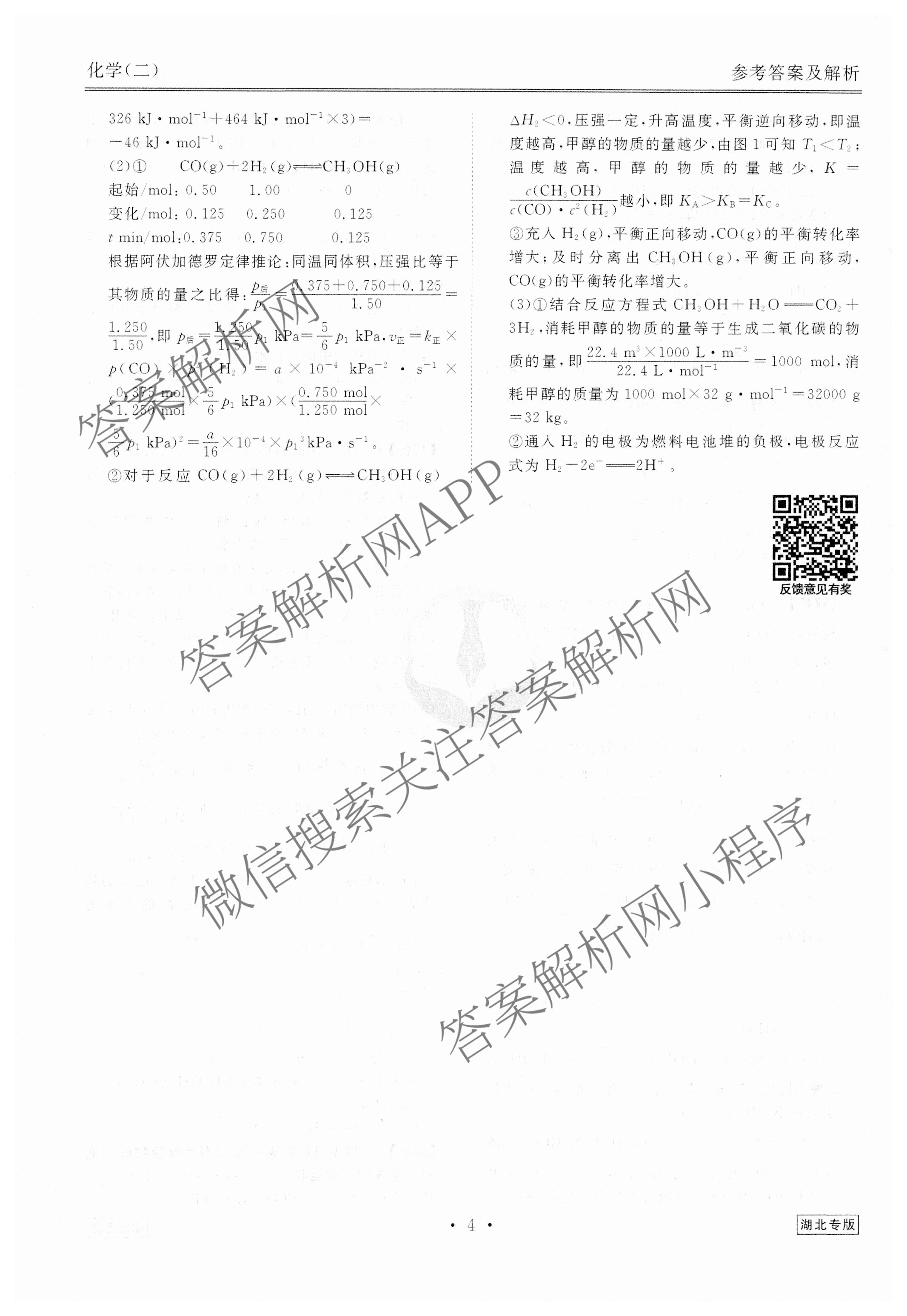 - [衡水金卷先享题]·调研卷 2024年普通高中学业水平选择性考试模拟试题(二)2化学(湖北专版)答案