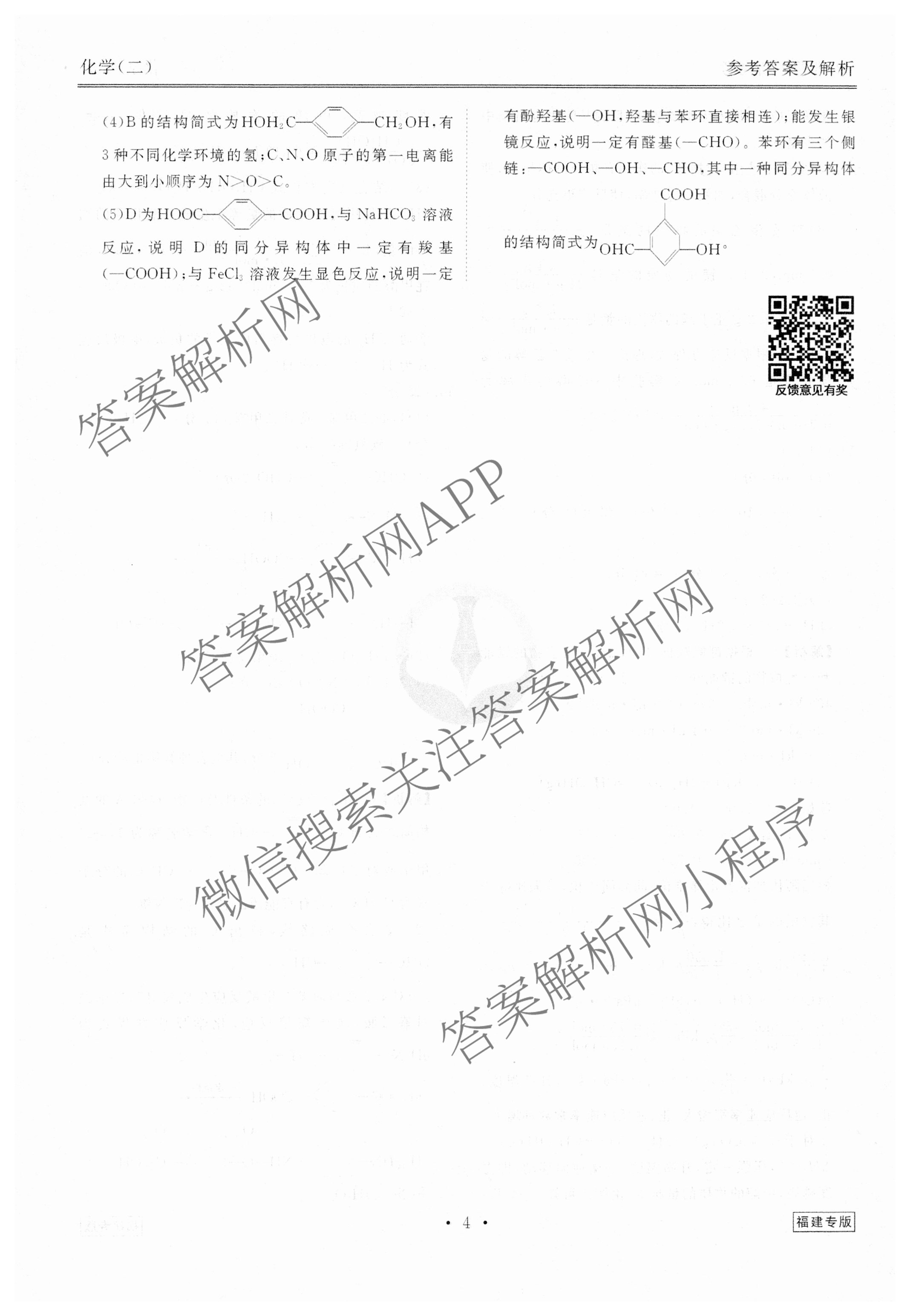 - [衡水金卷先享题]调研卷 2024年普通高中学业水平选择性考试模拟试题(二)2化学(福建专版)答案