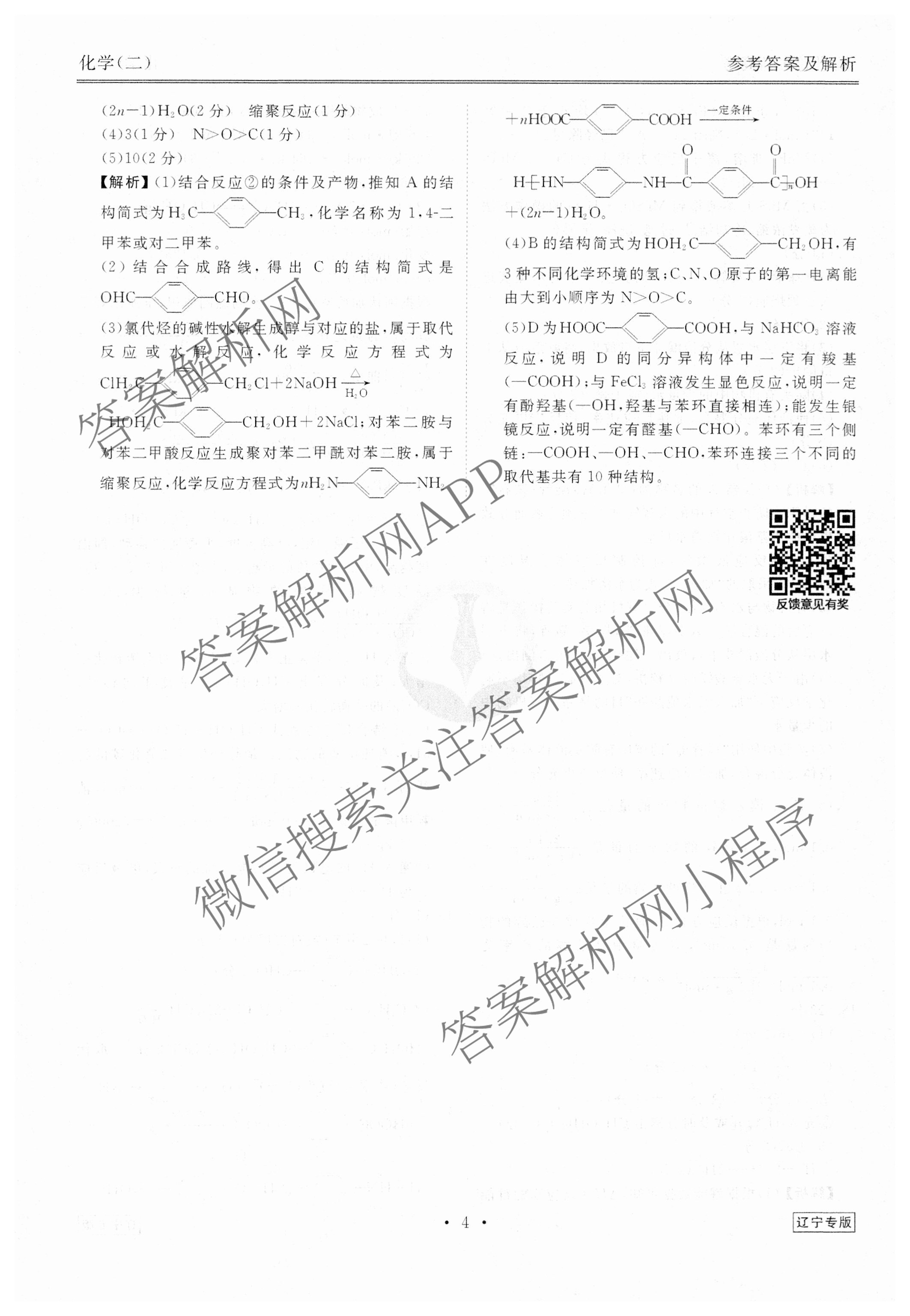 - (衡水金卷先享题)·调研卷 2024年普通高中学业水平选择性考试模拟试题(二)2化学(辽宁专版)答案