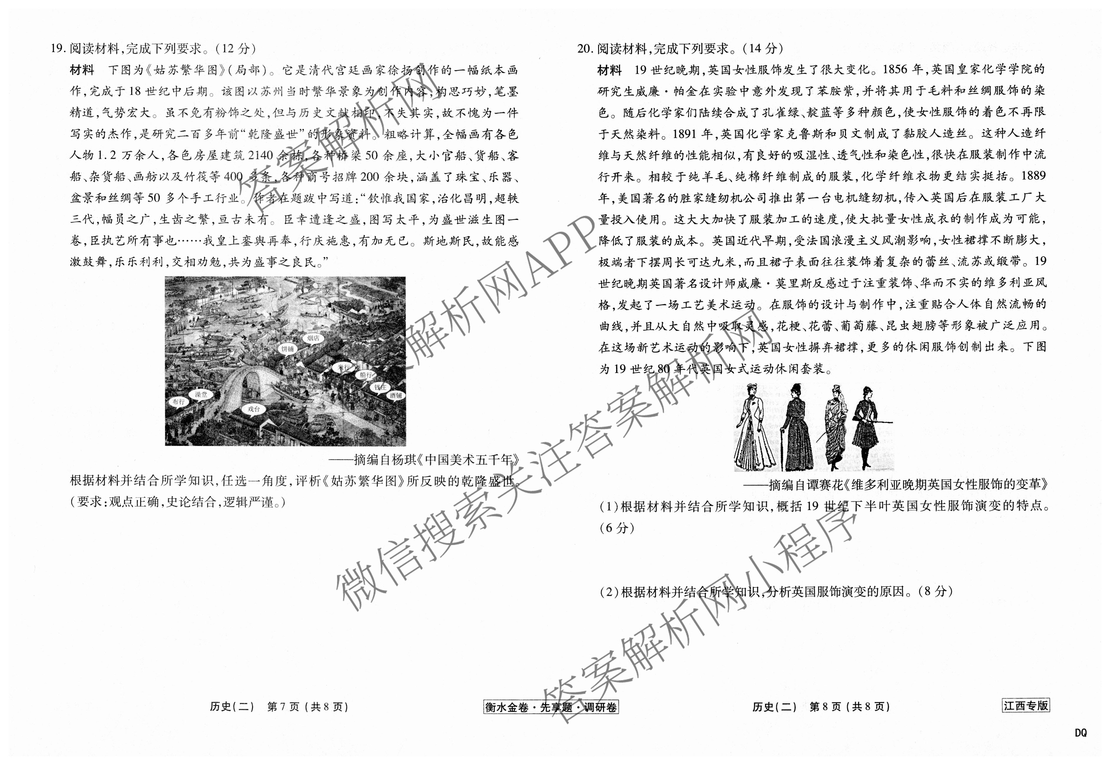 - [高三]衡水金卷先享题调研卷 2024年普通高中学业水平选择性考试模拟试题(二)2历史(江西专版)答案
