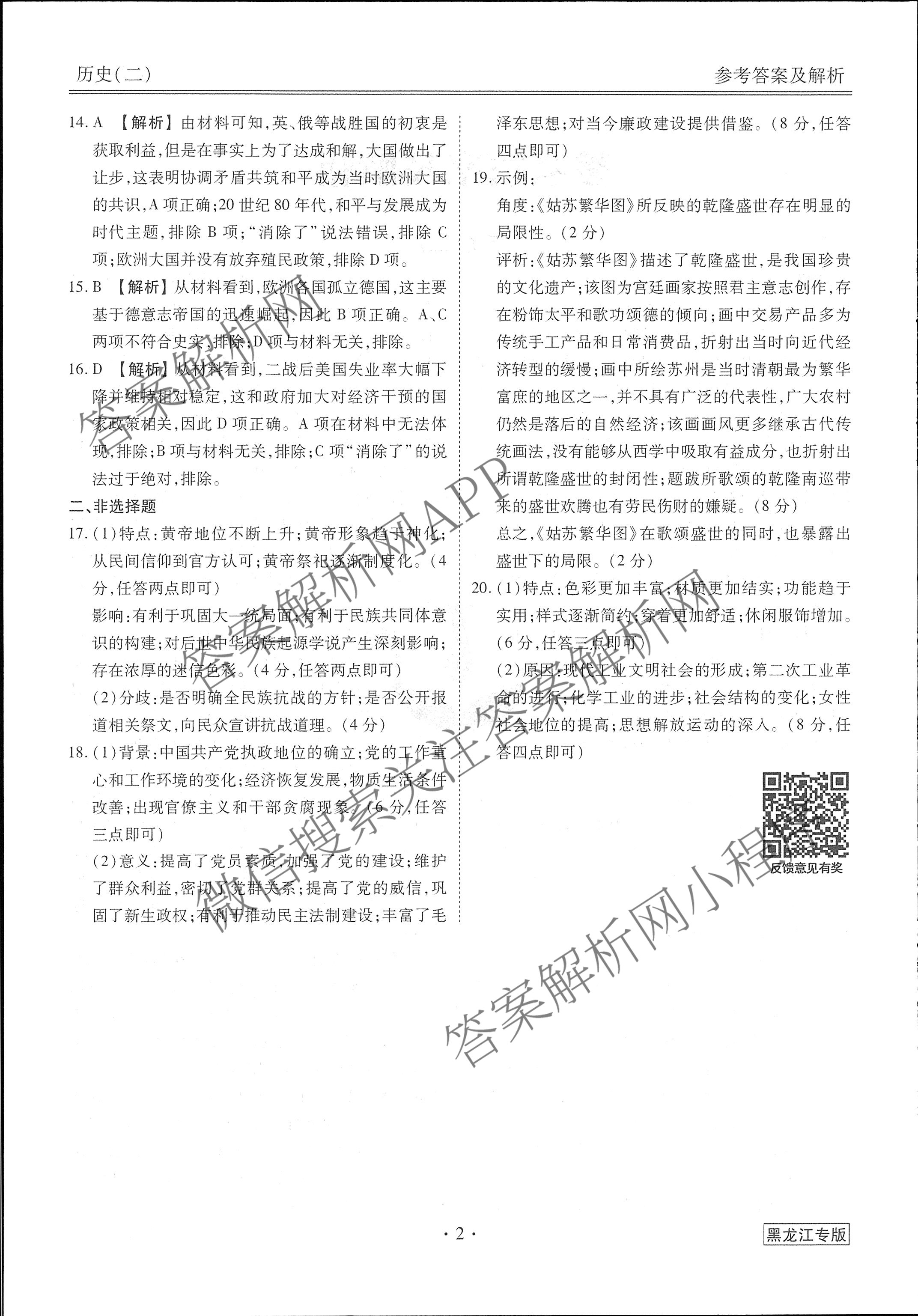 [衡水金卷先享题]·调研卷 2024年普通高中学业水平选择性考试模拟试题(二)2历史(黑龙江专版)答案