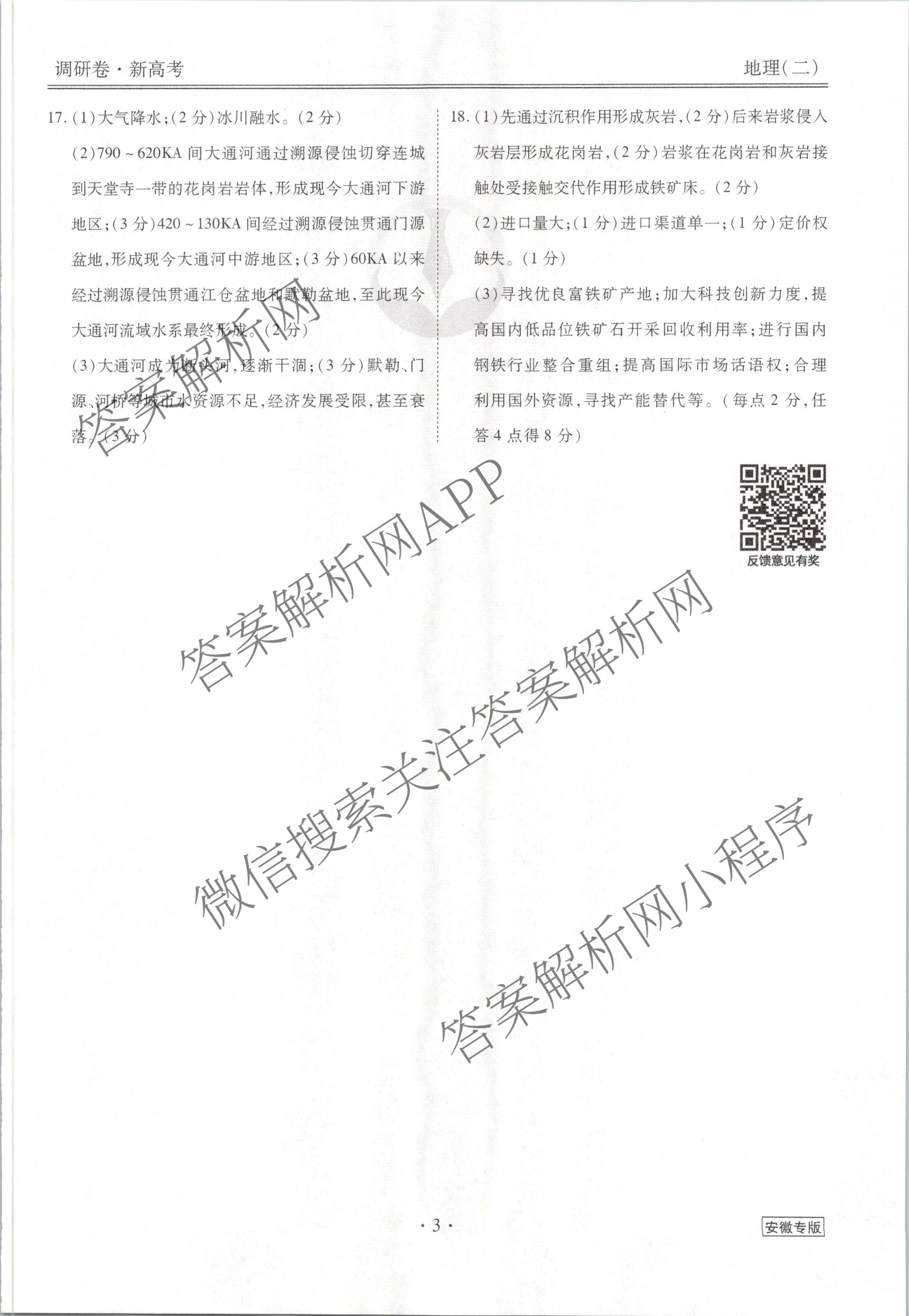 - (衡水金卷先享题)·调研卷 2024年普通高中学业水平选择性考试模拟试题(二)2地理(安徽专版)答案