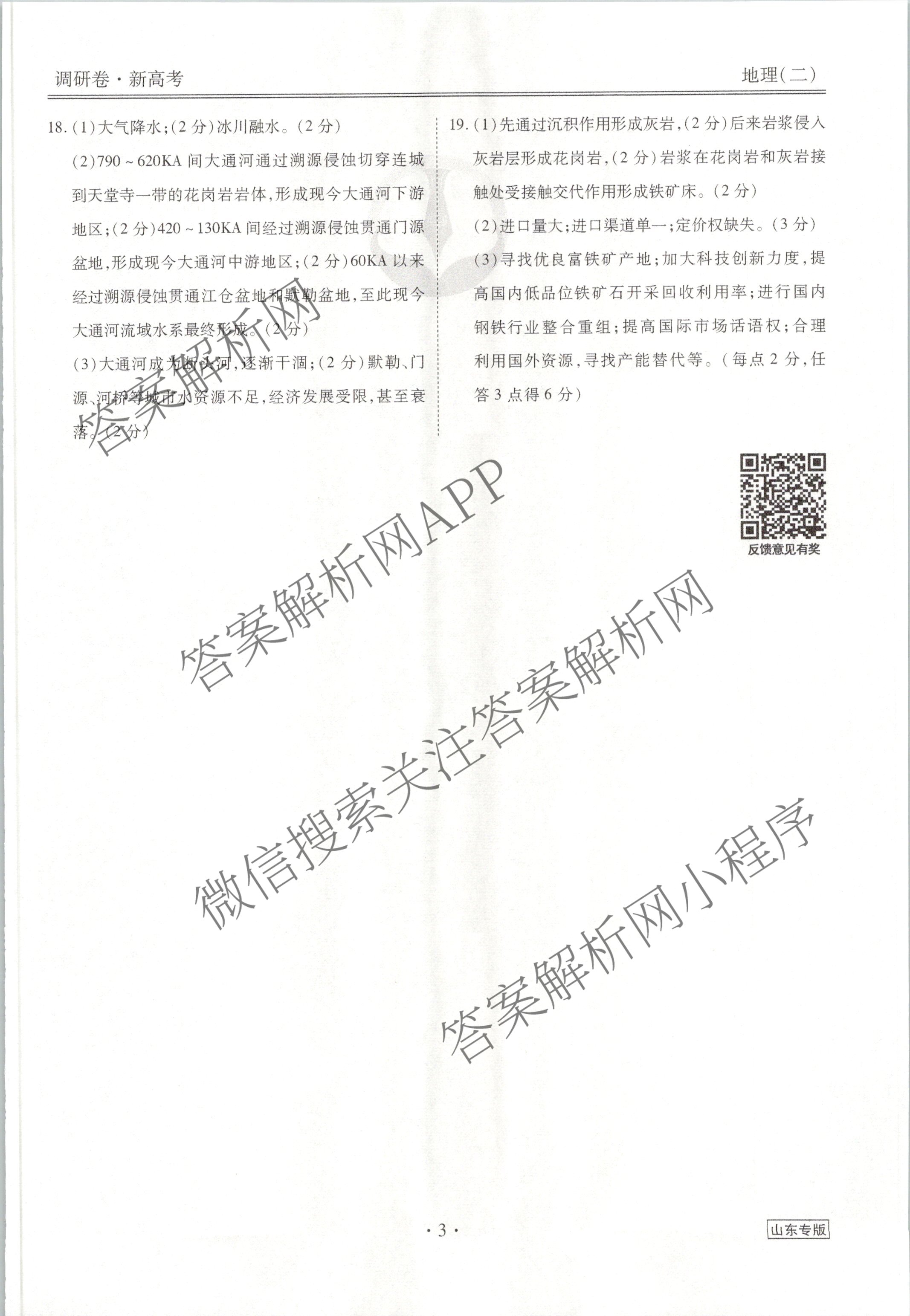 - (高三)衡水金卷先享题·调研卷 2024年普通高中学业水平选择性考试模拟试题(二)2地理(山东专版)答案