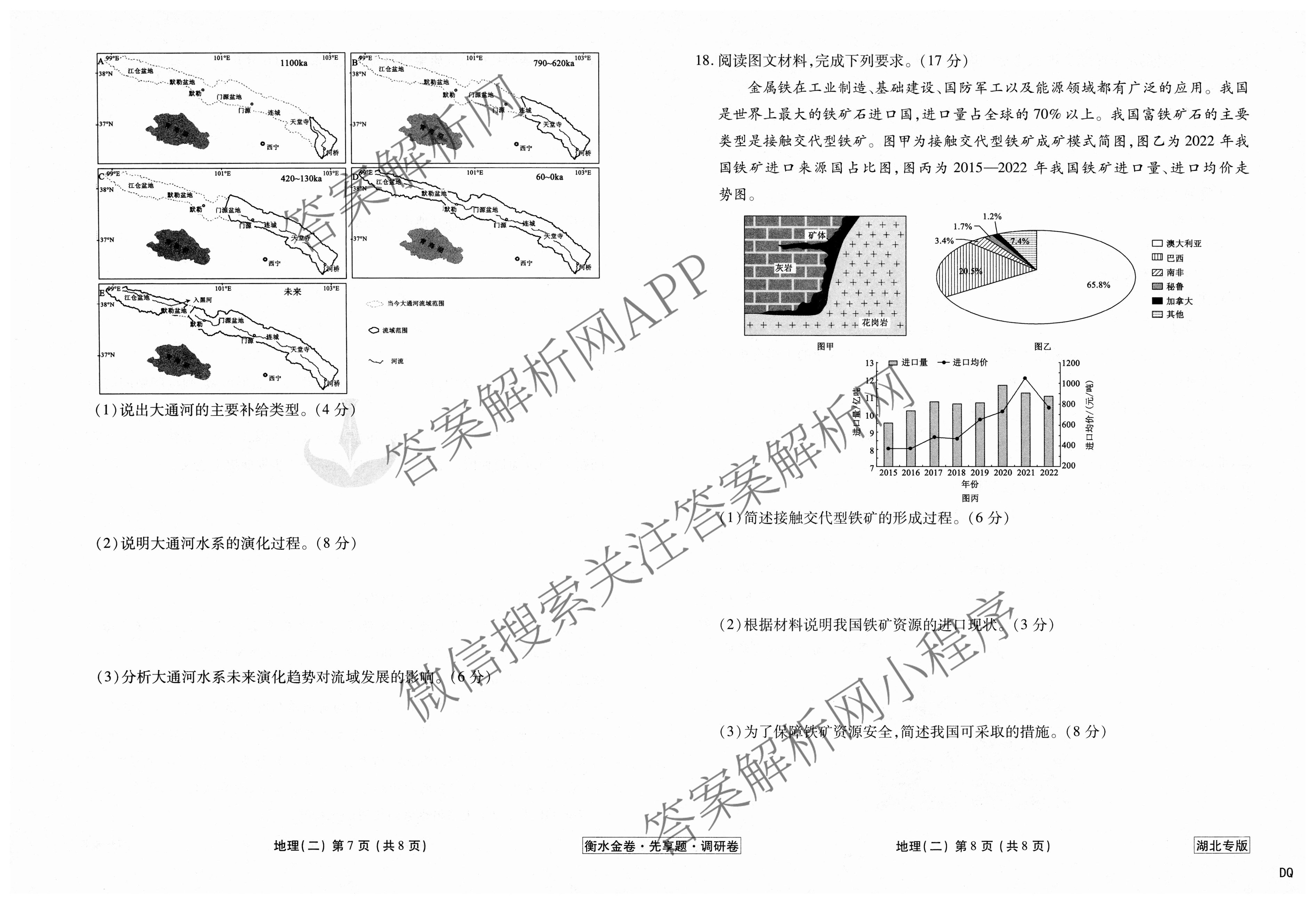 - (衡水金卷先享题)·调研卷 2024年普通高中学业水平选择性考试模拟试题(二)2地理(湖北专版)答案