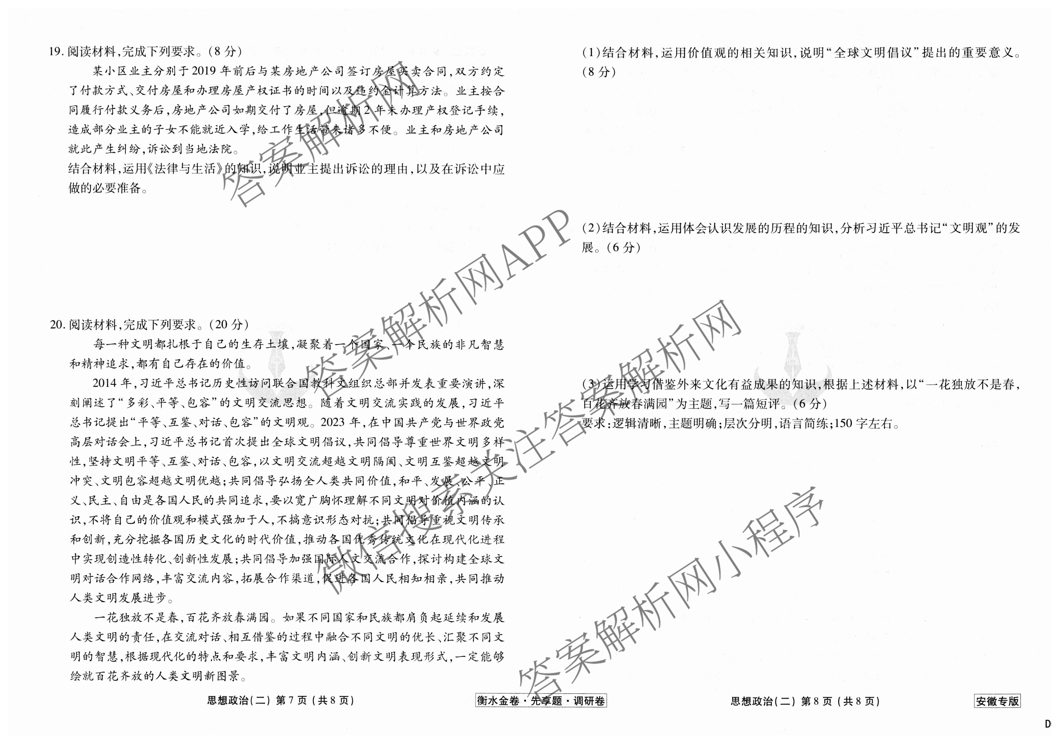 衡水金卷先享题·调研卷 2024年普通高中学业水平选择性考试模拟试题(二)2政治(安徽专版)试题,目前衡水金卷先享题答案网已经汇总了衡水金卷先享题·调研卷 2024年普通高中学业水平选择性考试模拟试题(二)2政治(安徽专版)试题的各科答案和试卷,获取更多衡水金卷先享题答案解析,请在关注本站。
