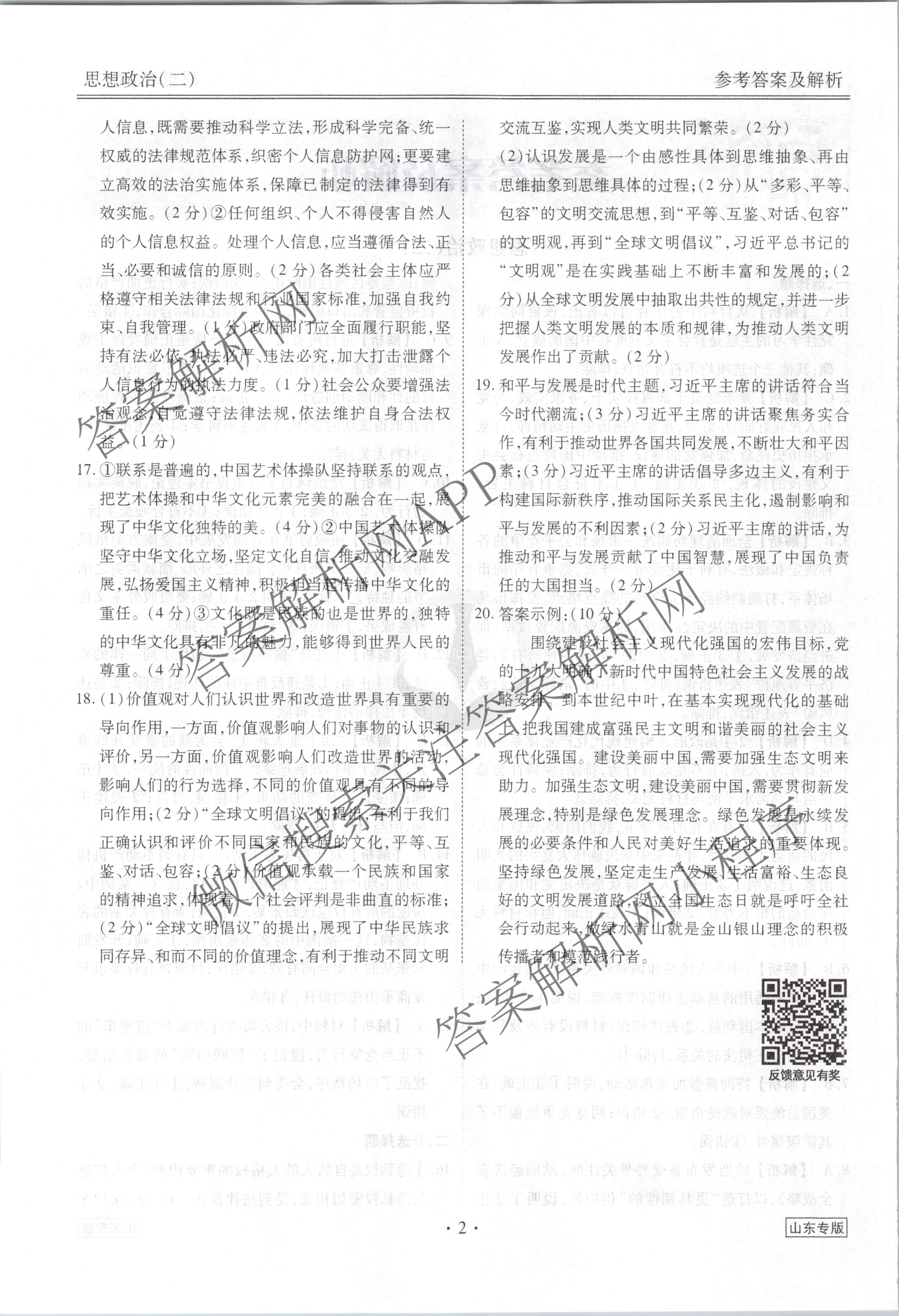 [衡水金卷先享题]调研卷 2024年普通高中学业水平选择性考试模拟试题(二)2政治(山东专版)答案