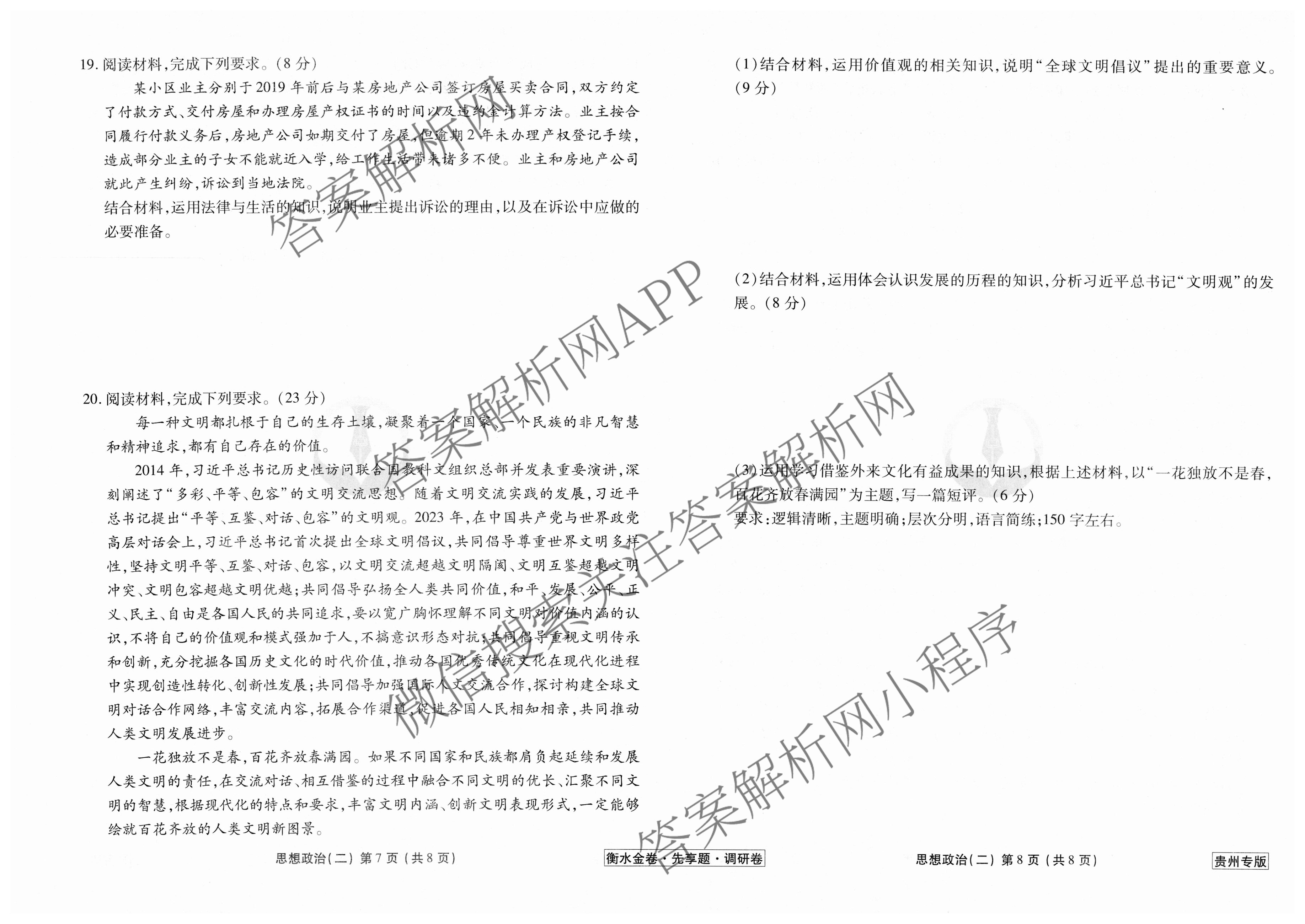 衡水金卷先享题·调研卷 2024年普通高中学业水平选择性考试模拟试题(二)2政治(贵州专版)试题,目前衡水金卷先享题答案网已经汇总了衡水金卷先享题·调研卷 2024年普通高中学业水平选择性考试模拟试题(二)2政治(贵州专版)试题的各科答案和试卷,获取更多衡水金卷先享题答案解析,请在关注本站。