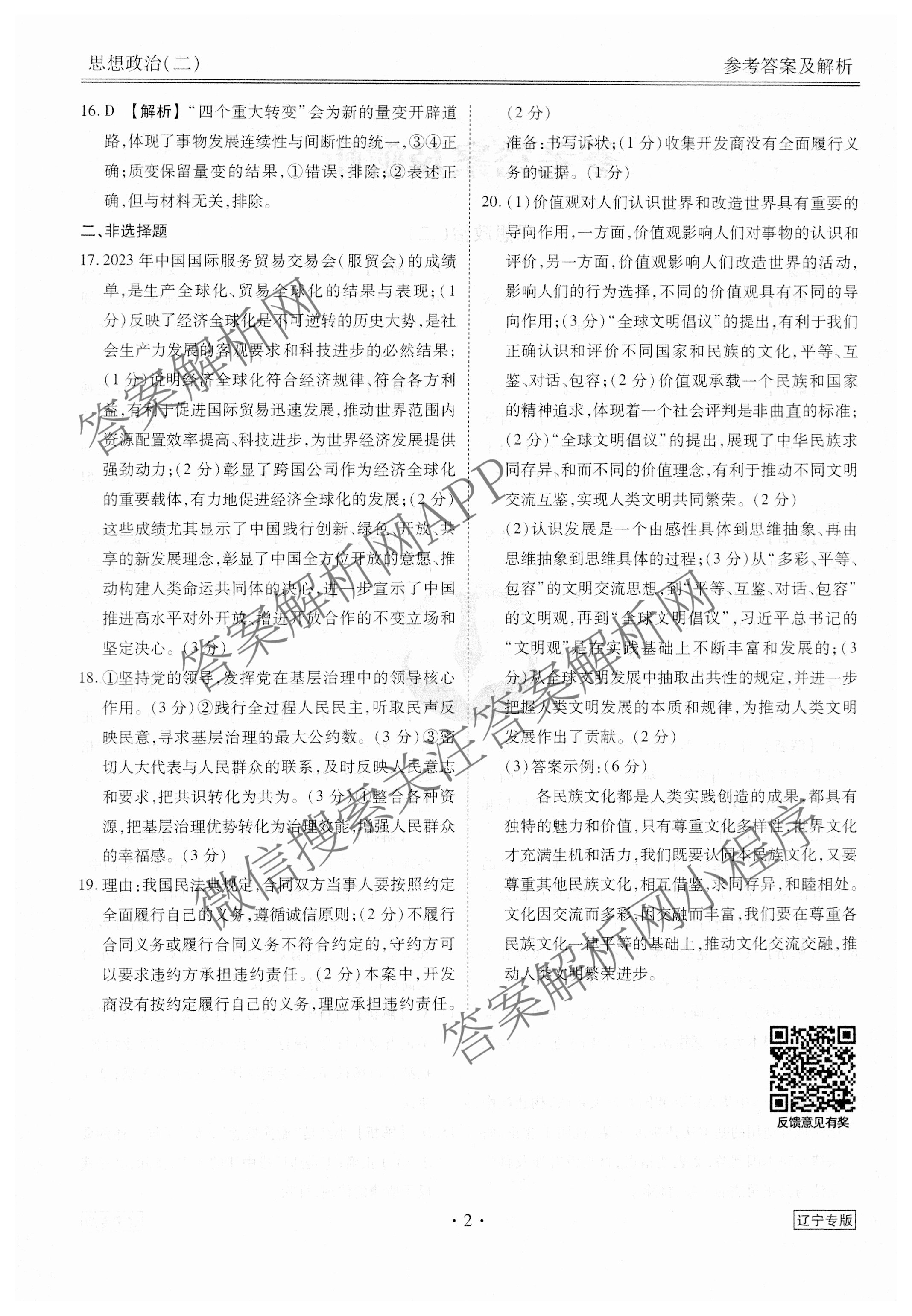 [高三][衡水金卷先享题]·调研卷 2024年普通高中学业水平选择性考试模拟试题(二)2政治(辽宁专版)答案