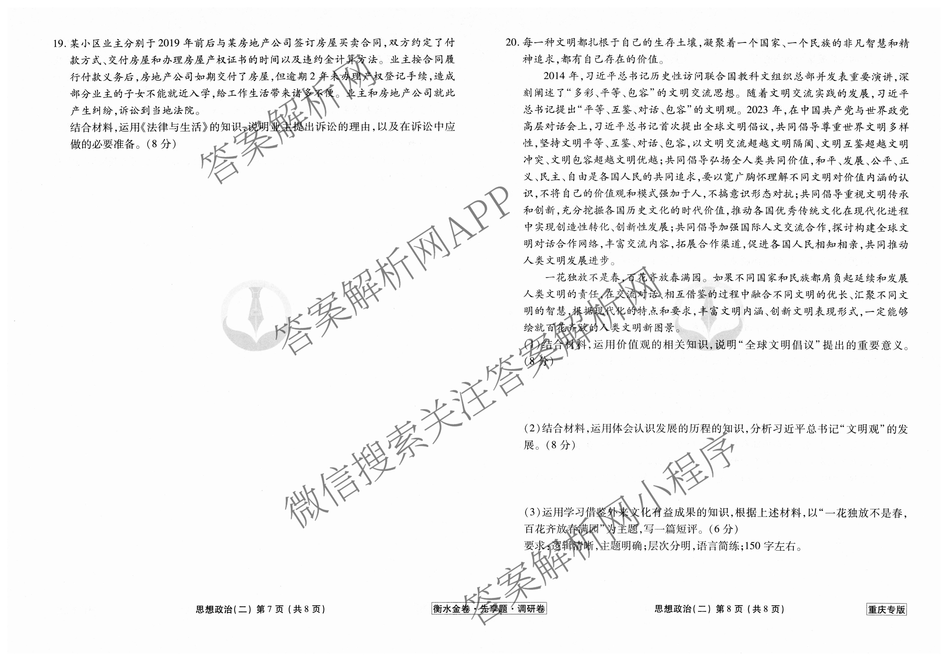 衡水金卷先享题·调研卷 2024年普通高中学业水平选择性考试模拟试题(二)2政治(重庆专版)试题,目前衡水金卷先享题答案网已经汇总了衡水金卷先享题·调研卷 2024年普通高中学业水平选择性考试模拟试题(二)2政治(重庆专版)试题的各科答案和试卷,获取更多衡水金卷先享题答案解析,请在关注本站。