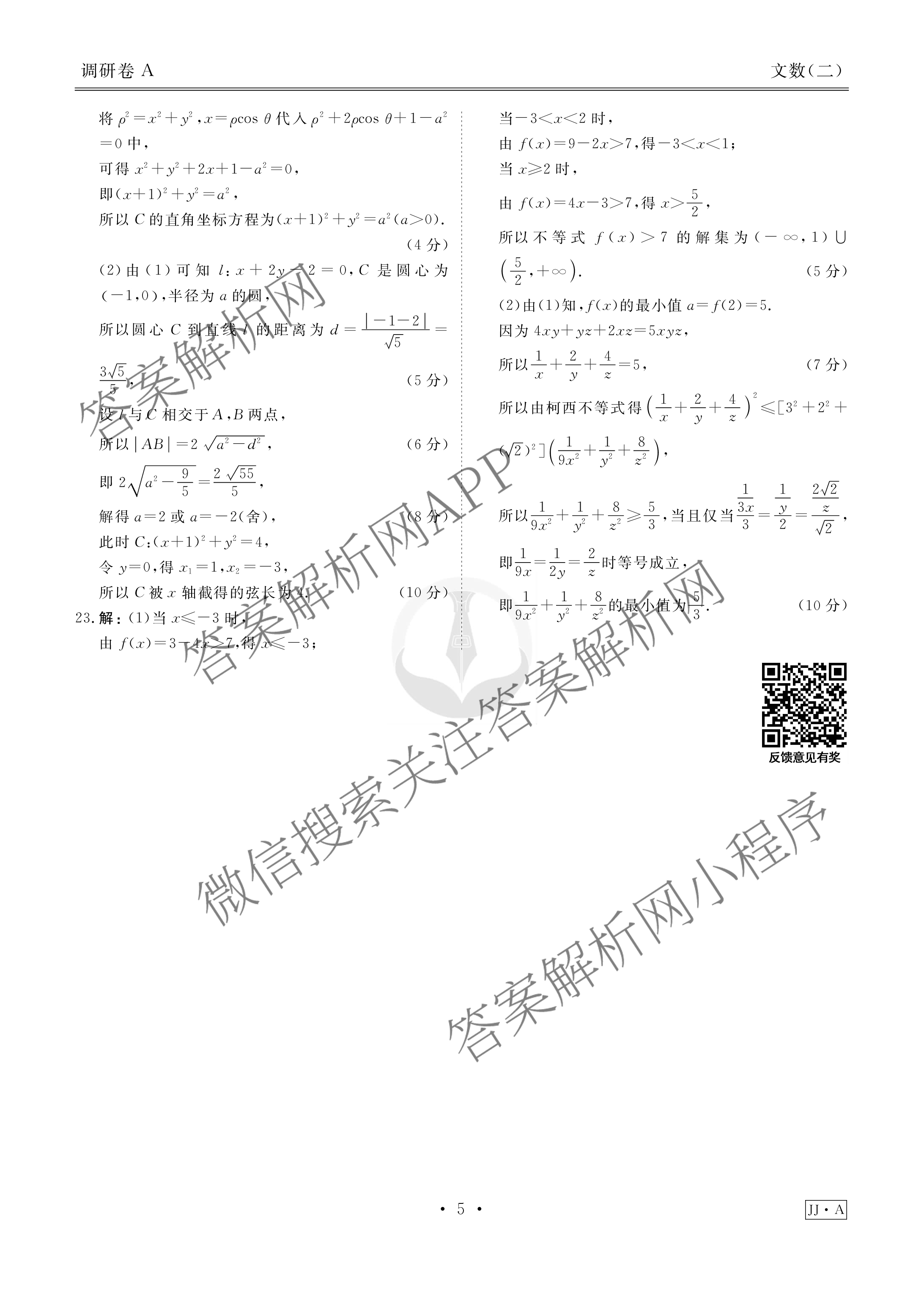 (高三)(衡水金卷先享题)·调研卷 2024年普通高等学校招生全国统一考试模拟试题(二)2文数(JJ·A)答案
