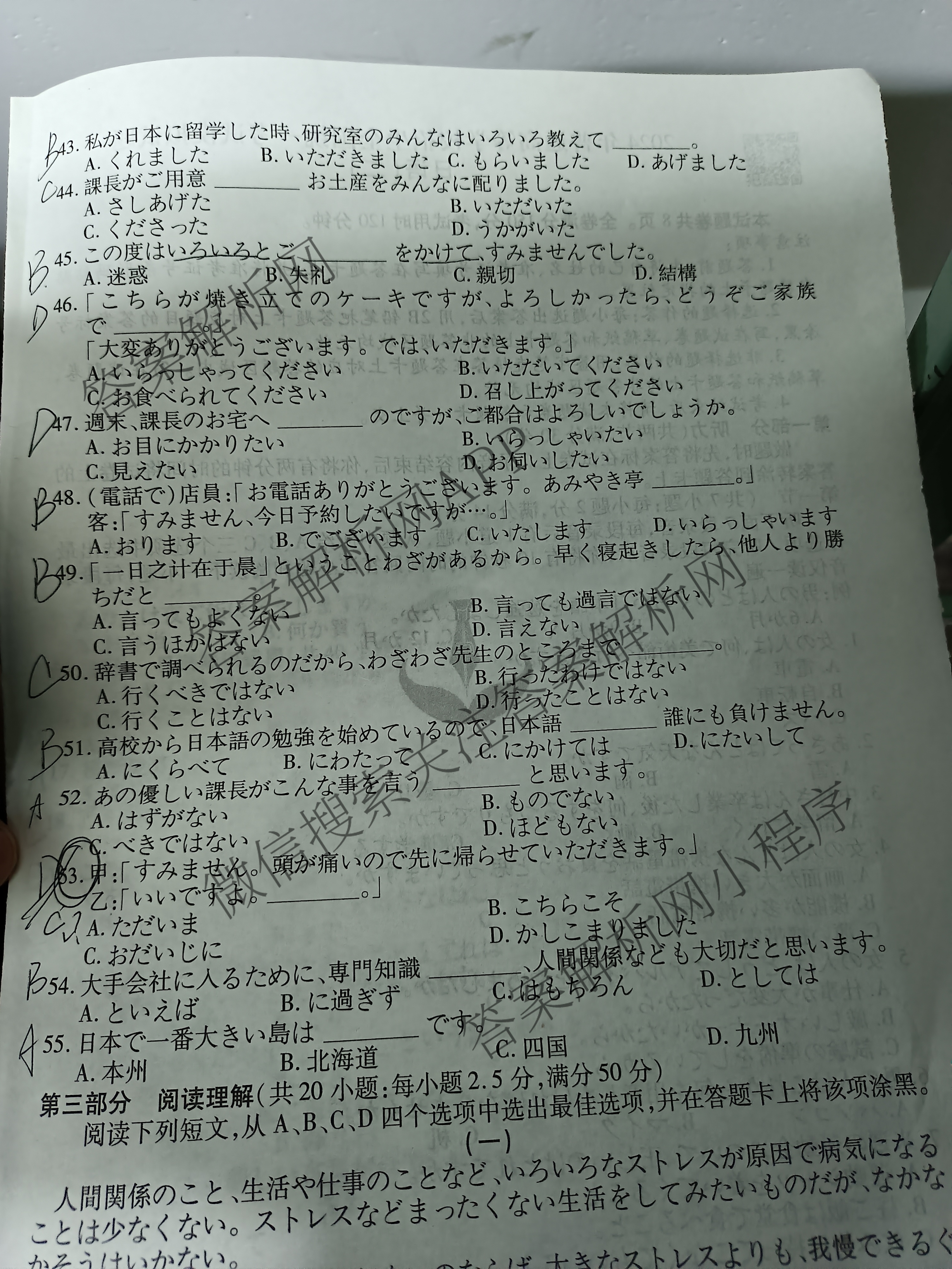 (衡水金卷先享题)·调研卷 2024年普通高等学校招生全国统一考试模拟试题(二)2日语试题