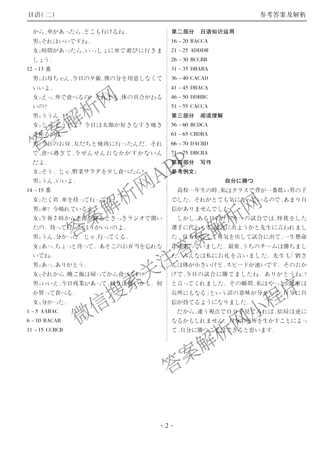 [衡水金卷先享题]调研卷 2024年普通高等学校招生全国统一考试模拟试题(二)2日语答案