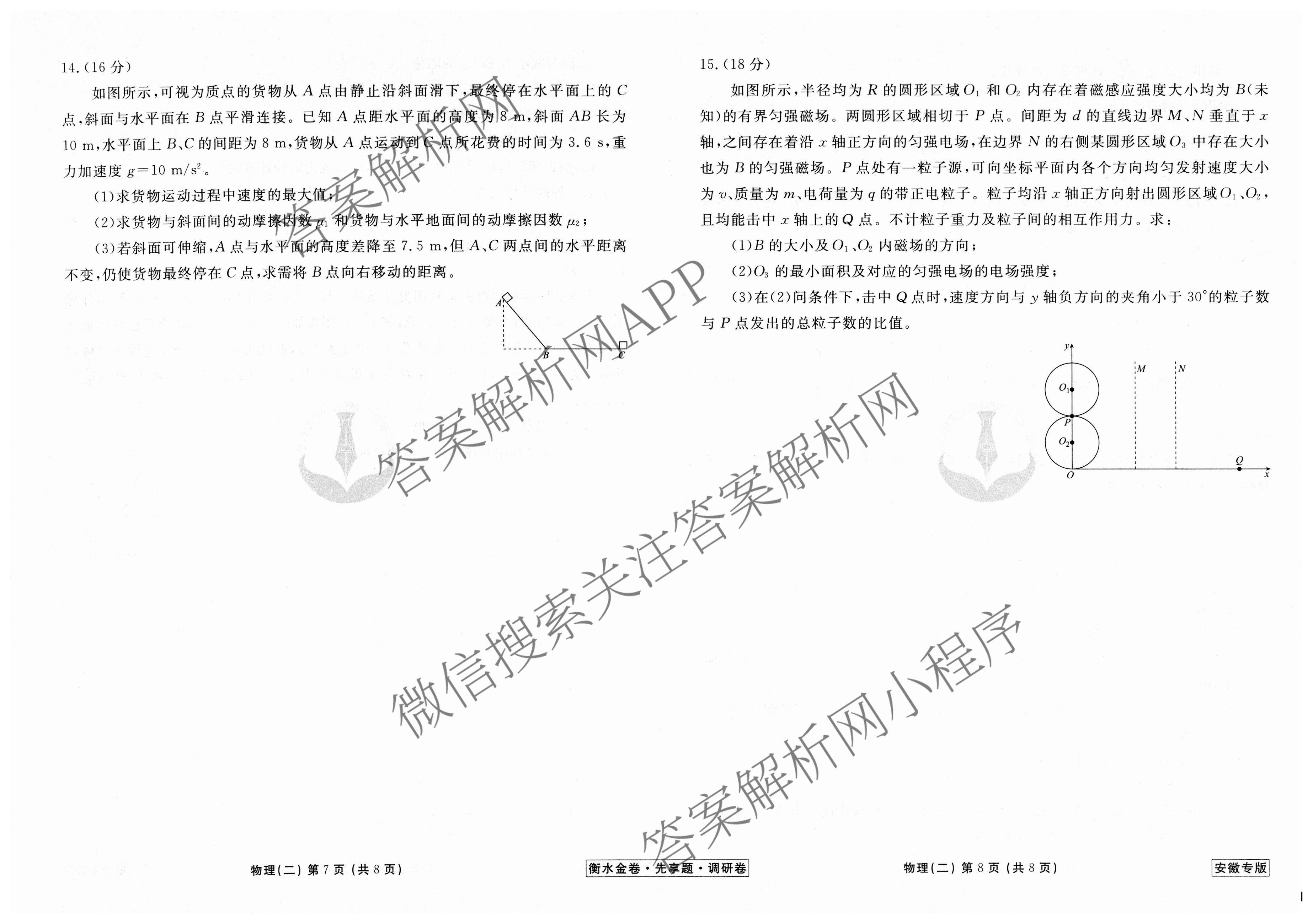 衡水金卷先享题·调研卷 2024年普通高中学业水平选择性考试模拟试题(二)2物理(安徽专版)试题,目前衡水金卷先享题答案网已经汇总了衡水金卷先享题·调研卷 2024年普通高中学业水平选择性考试模拟试题(二)2物理(安徽专版)试题的各科答案和试卷,获取更多衡水金卷先享题答案解析,请在关注本站。