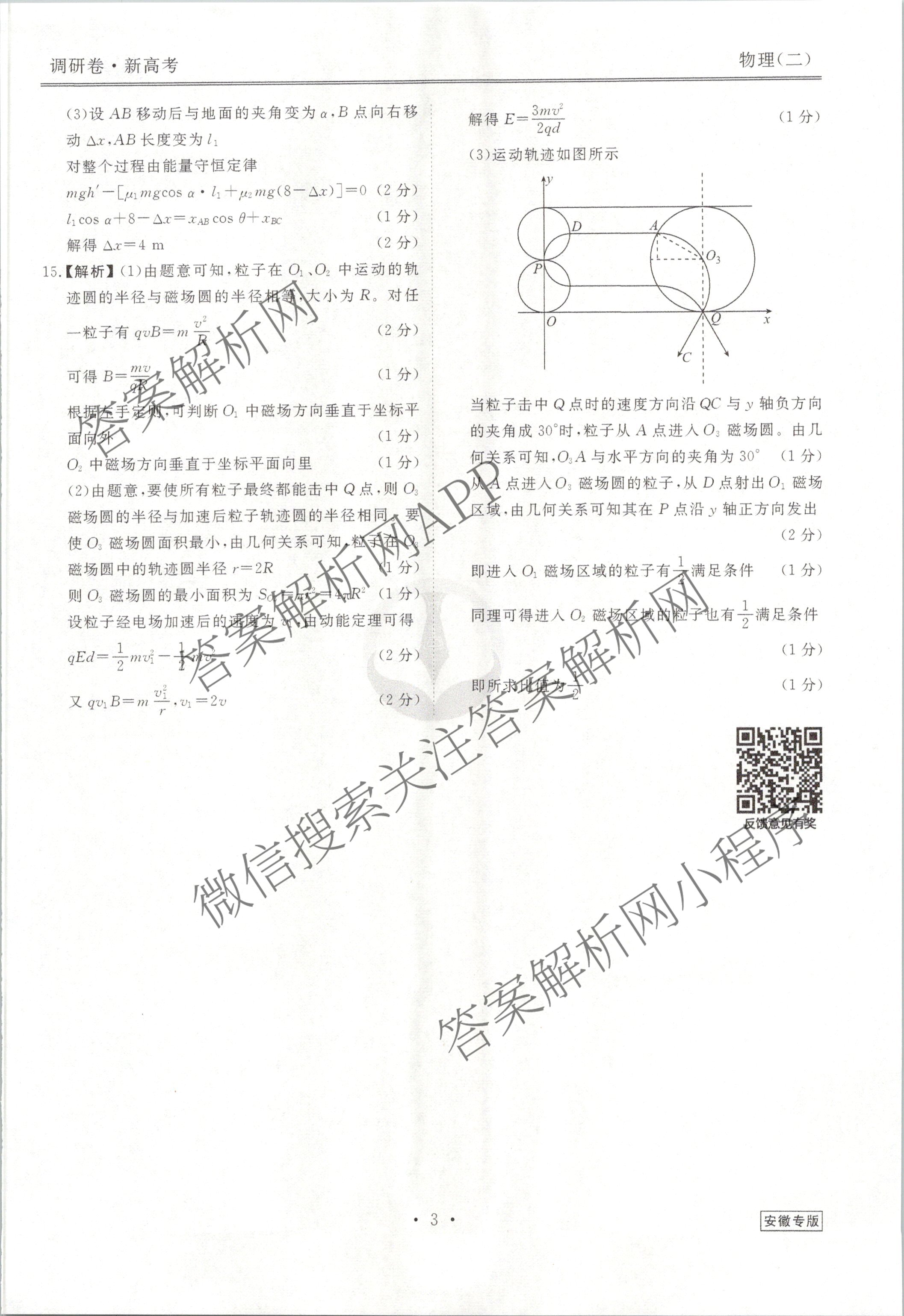 [衡水金卷先享题]调研卷 2024年普通高中学业水平选择性考试模拟试题(二)2物理(安徽专版)答案