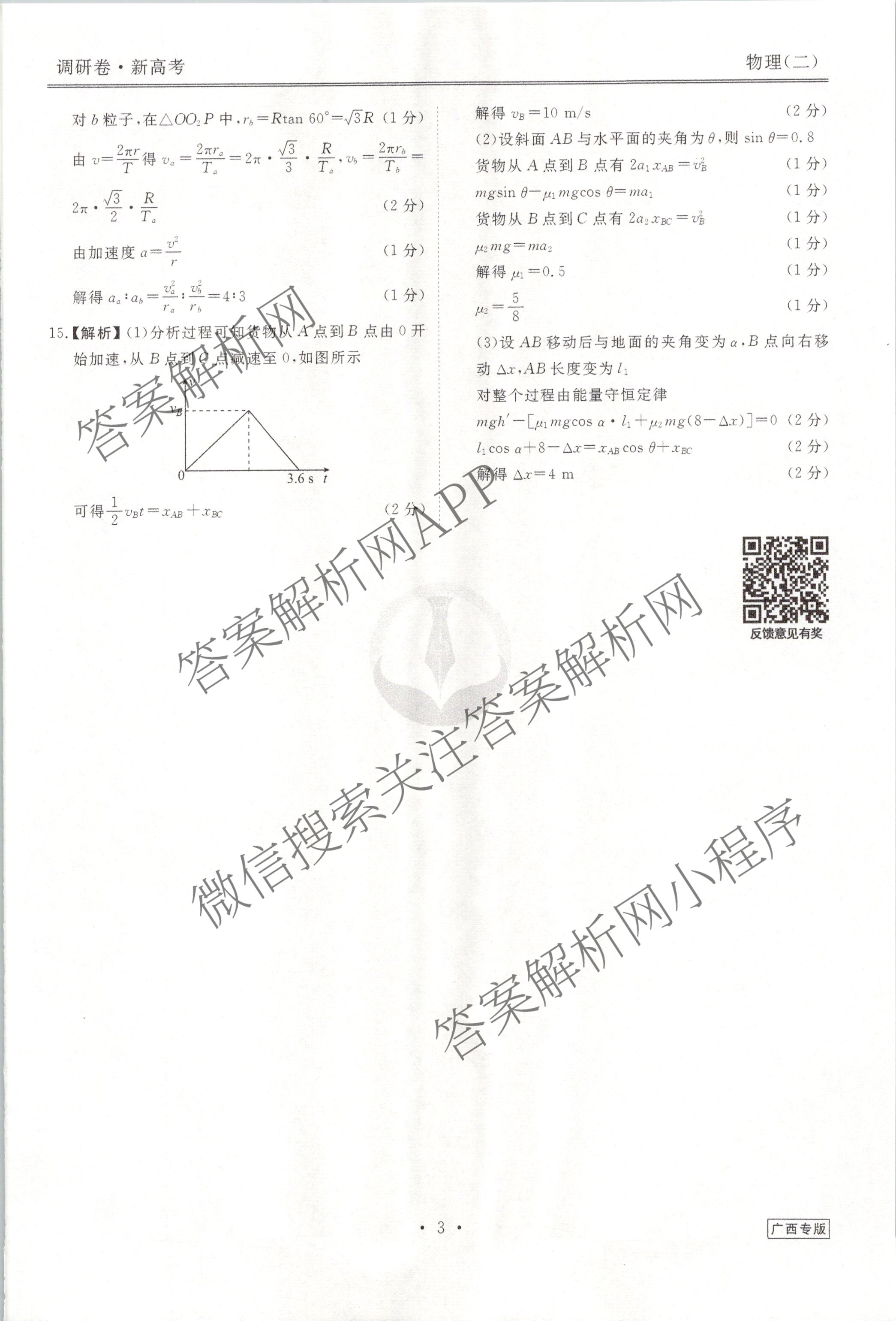 (高三)[衡水金卷先享题]·调研卷 2024年普通高中学业水平选择性考试模拟试题(二)2物理(广西专版)答案