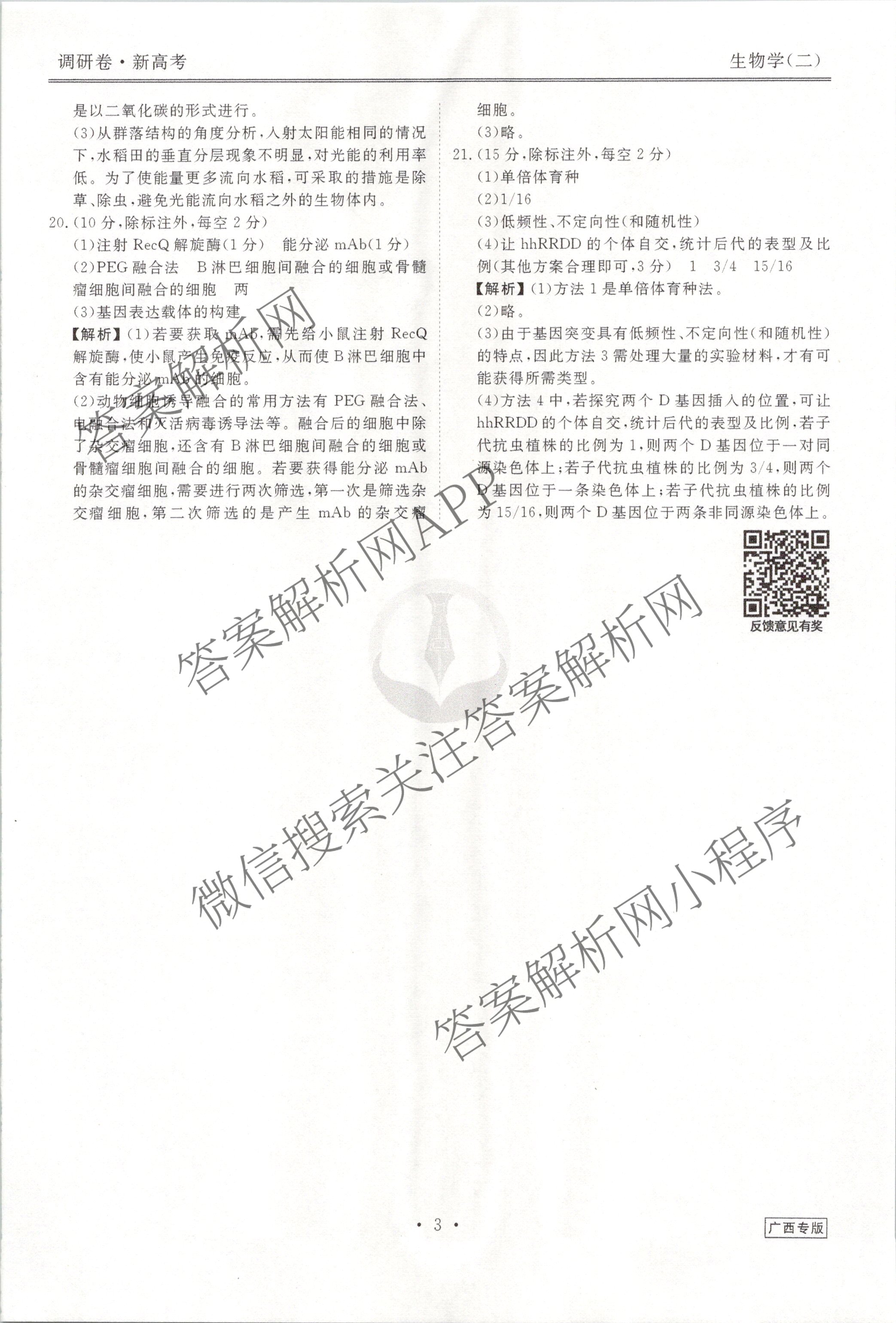 衡水金卷先享题·调研卷 2024年普通高中学业水平选择性考试模拟试题(二)2生物(广西专版)答案,目前衡水金卷先享题答案网已经汇总了衡水金卷先享题·调研卷 2024年普通高中学业水平选择性考试模拟试题(二)2生物(广西专版)答案的各科答案和试卷,获取更多衡水金卷先享题答案解析,请在关注本站。