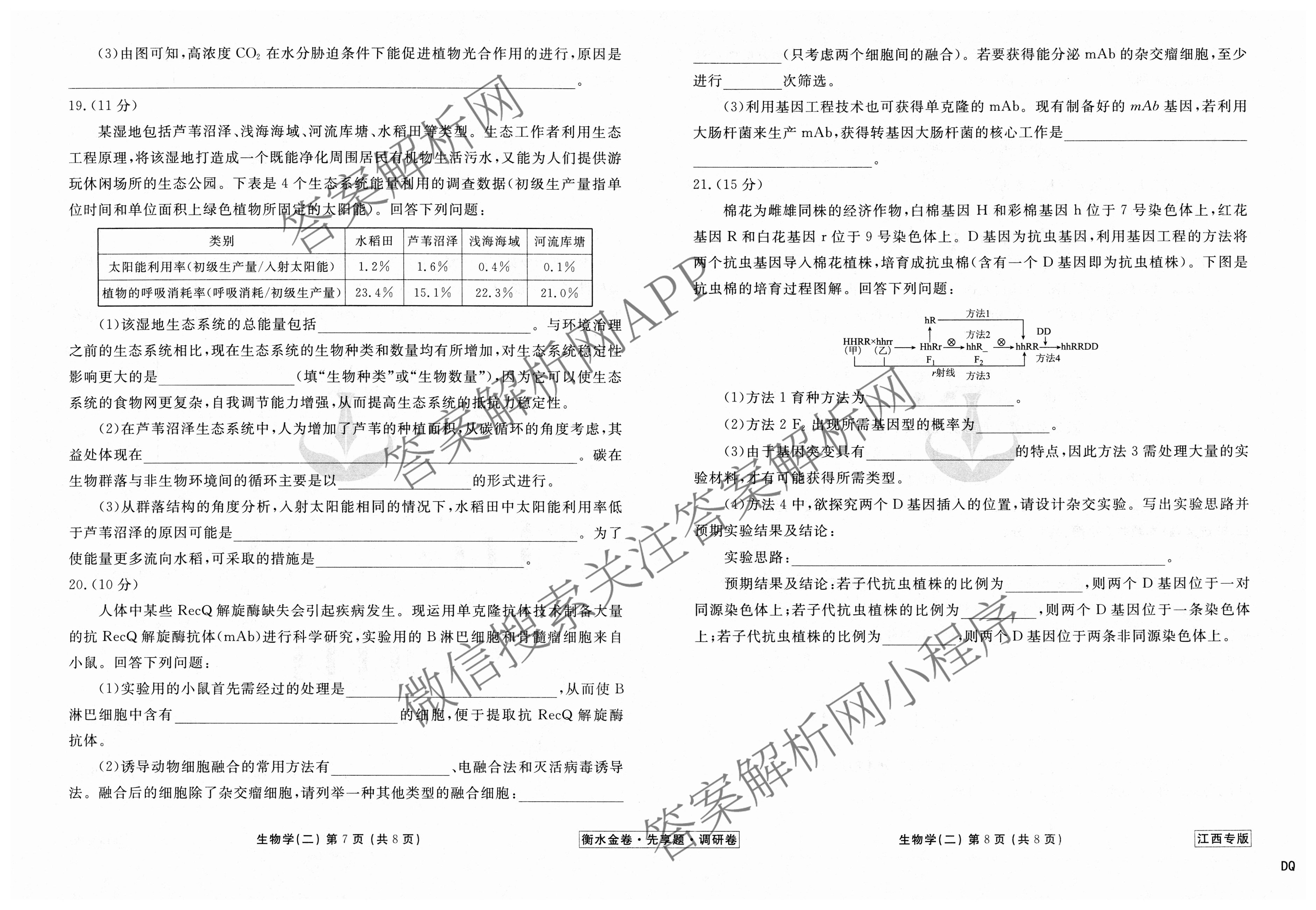 衡水金卷先享题·调研卷 2024年普通高中学业水平选择性考试模拟试题(二)2生物(江西专版)试题,目前衡水金卷先享题答案网已经汇总了衡水金卷先享题·调研卷 2024年普通高中学业水平选择性考试模拟试题(二)2生物(江西专版)试题的各科答案和试卷,获取更多衡水金卷先享题答案解析,请在关注本站。