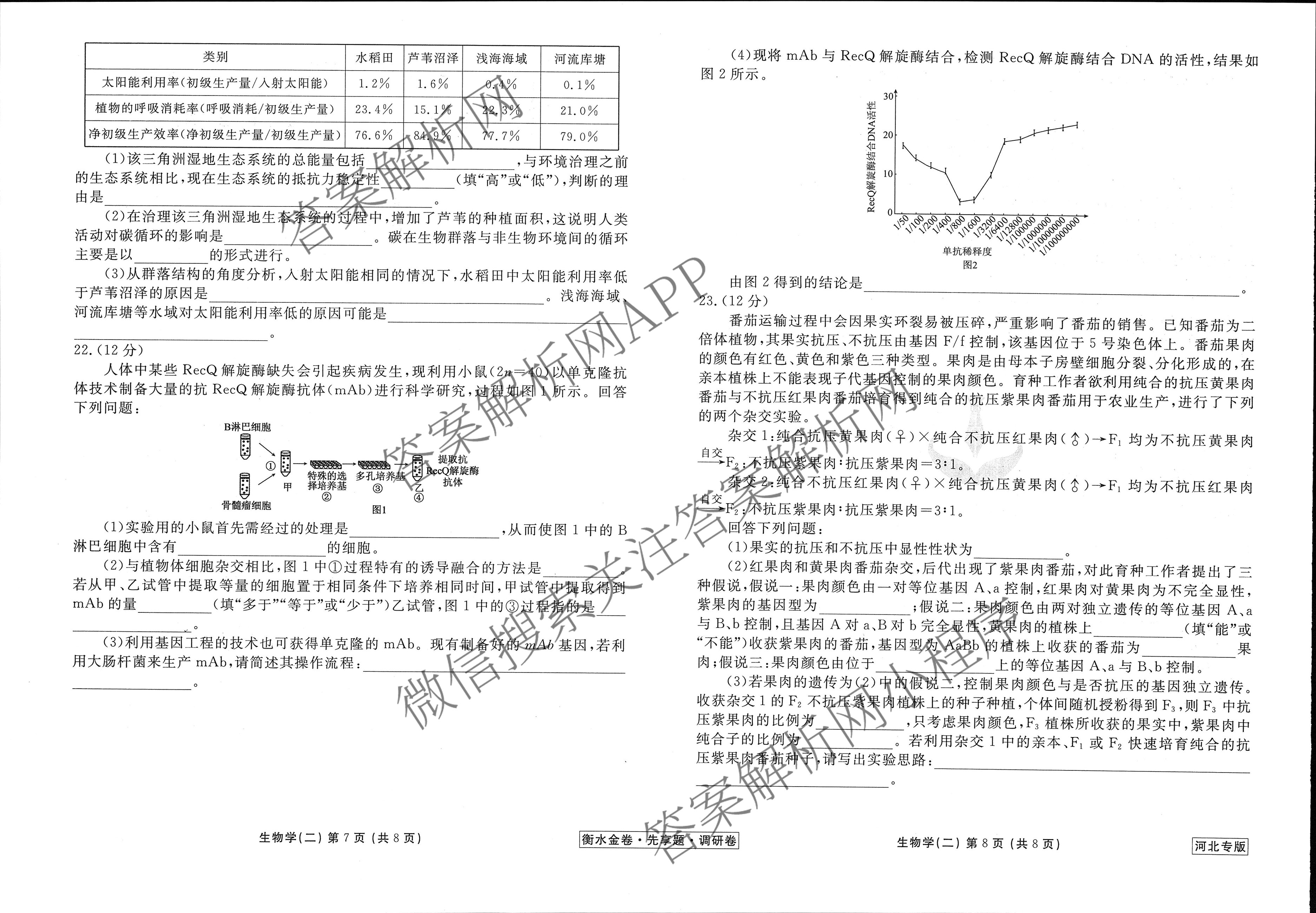 衡水金卷先享题·调研卷 2024年普通高中学业水平选择性考试模拟试题(二)2生物(河北专版)试题,目前衡水金卷先享题答案网已经汇总了衡水金卷先享题·调研卷 2024年普通高中学业水平选择性考试模拟试题(二)2生物(河北专版)试题的各科答案和试卷,获取更多衡水金卷先享题答案解析,请在关注本站。