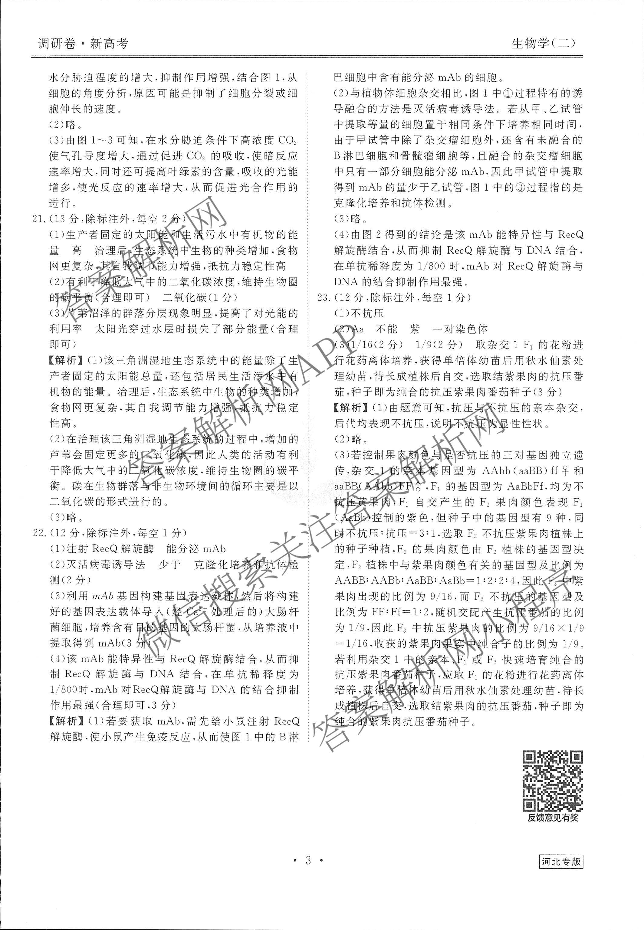 衡水金卷先享题·调研卷 2024年普通高中学业水平选择性考试模拟试题(二)2生物(河北专版)答案,目前衡水金卷先享题答案网已经汇总了衡水金卷先享题·调研卷 2024年普通高中学业水平选择性考试模拟试题(二)2生物(河北专版)答案的各科答案和试卷,获取更多衡水金卷先享题答案解析,请在关注本站。