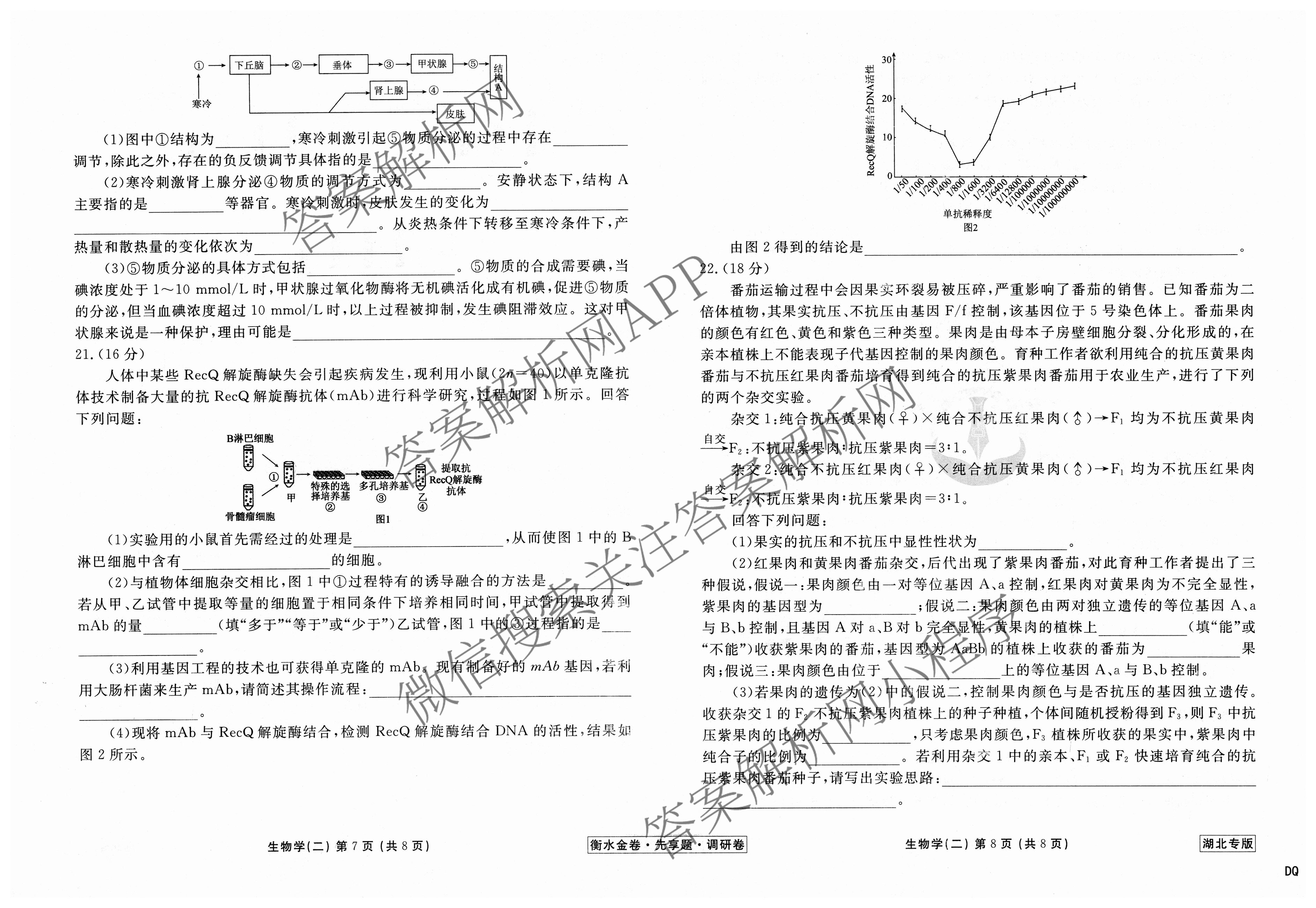 衡水金卷先享题·调研卷 2024年普通高中学业水平选择性考试模拟试题(二)2生物(湖北专版)试题,目前衡水金卷先享题答案网已经汇总了衡水金卷先享题·调研卷 2024年普通高中学业水平选择性考试模拟试题(二)2生物(湖北专版)试题的各科答案和试卷,获取更多衡水金卷先享题答案解析,请在关注本站。