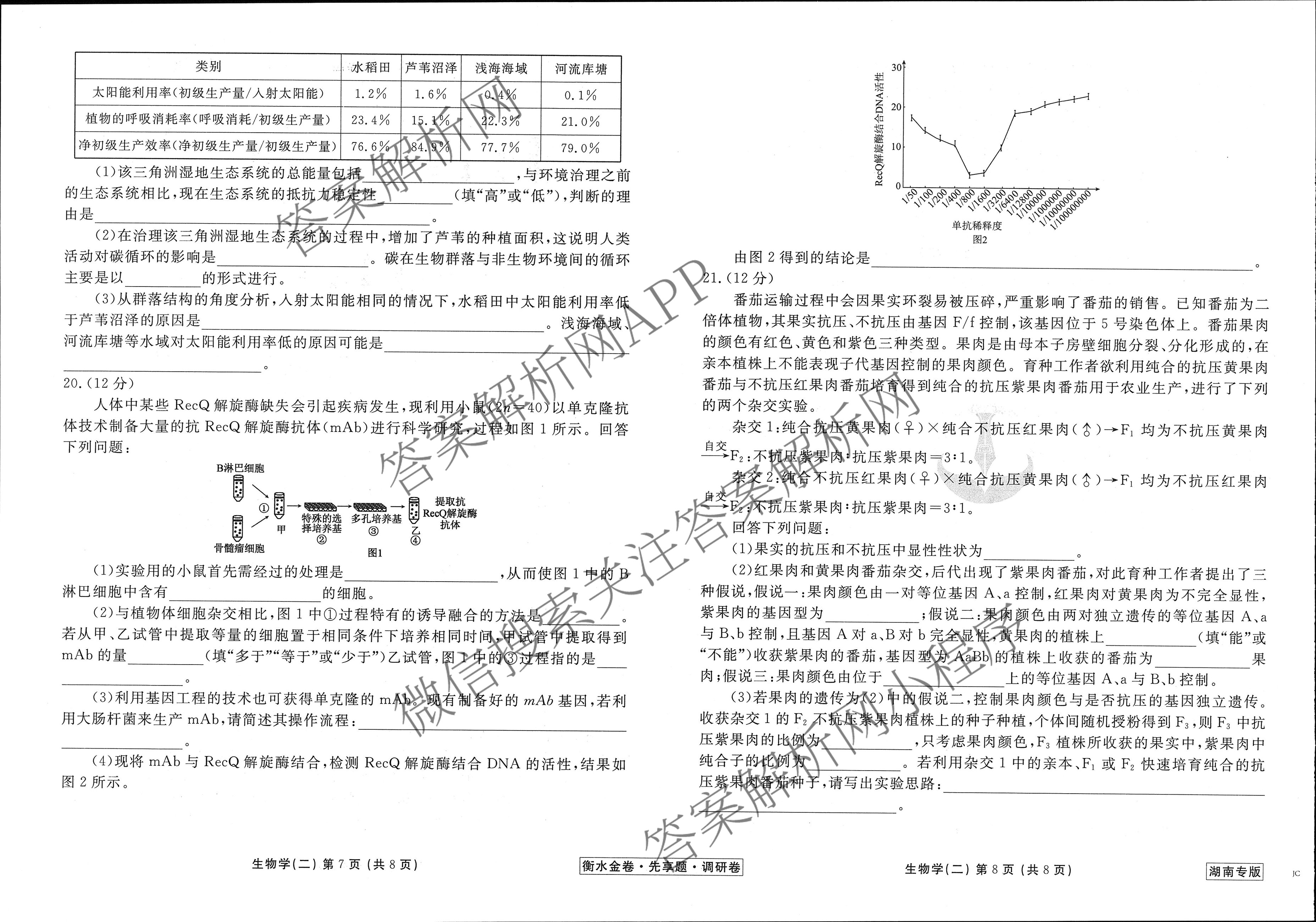 衡水金卷先享题·调研卷 2024年普通高中学业水平选择性考试模拟试题(二)2生物(湖南专版)试题,目前衡水金卷先享题答案网已经汇总了衡水金卷先享题·调研卷 2024年普通高中学业水平选择性考试模拟试题(二)2生物(湖南专版)试题的各科答案和试卷,获取更多衡水金卷先享题答案解析,请在关注本站。