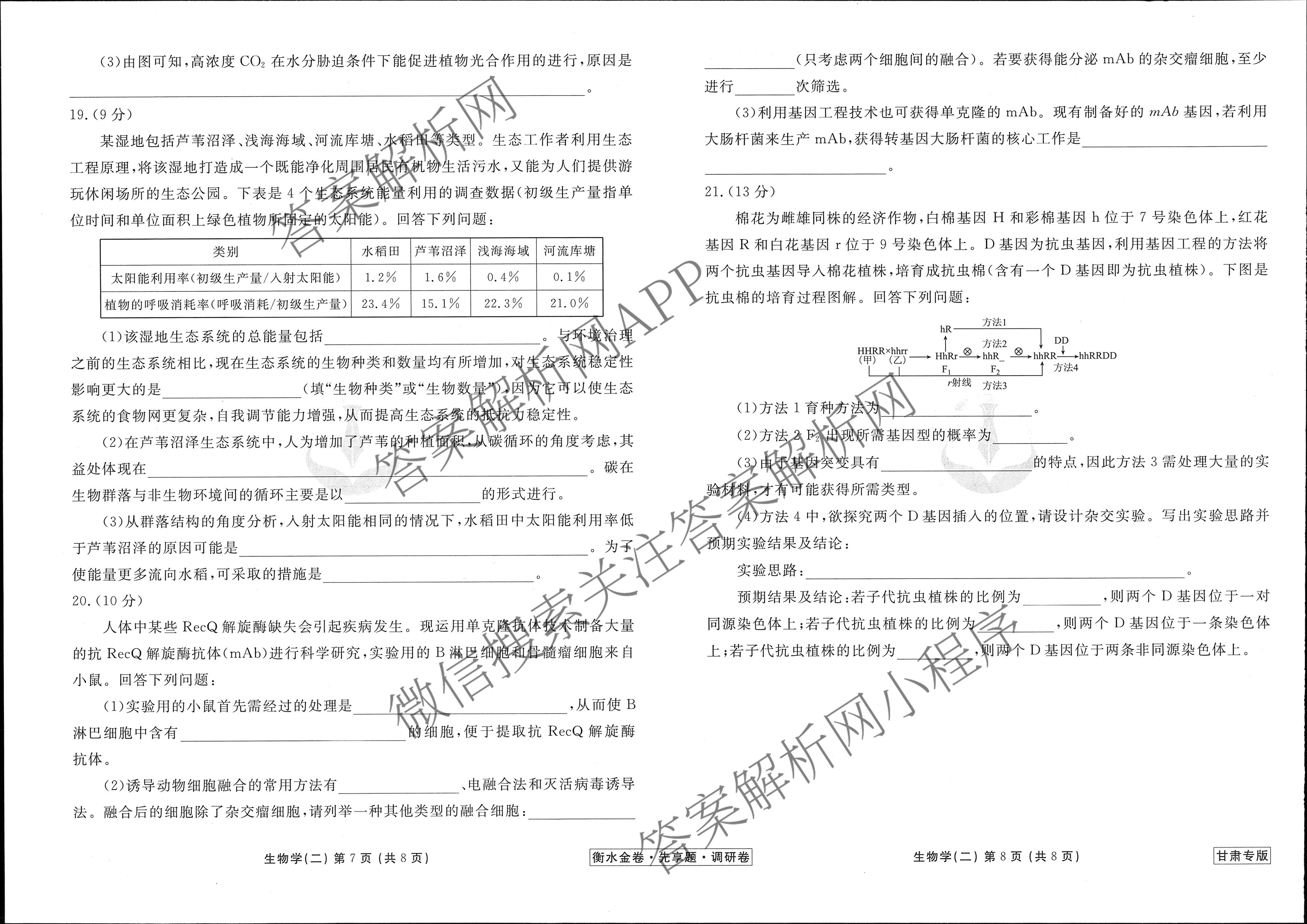 衡水金卷先享题·调研卷 2024年普通高中学业水平选择性考试模拟试题(二)2生物(甘肃专版)试题,目前衡水金卷先享题答案网已经汇总了衡水金卷先享题·调研卷 2024年普通高中学业水平选择性考试模拟试题(二)2生物(甘肃专版)试题的各科答案和试卷,获取更多衡水金卷先享题答案解析,请在关注本站。
