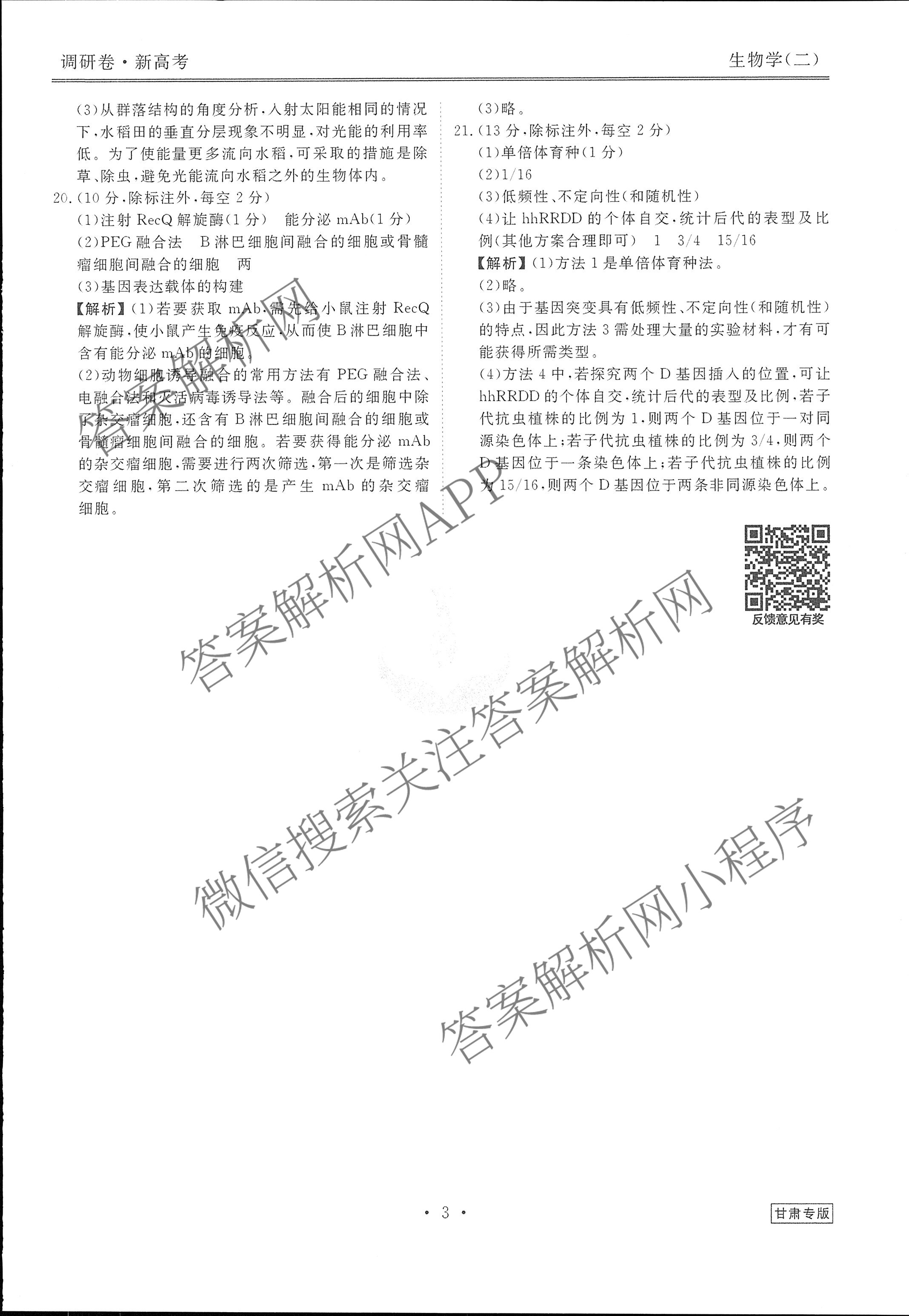 衡水金卷先享题·调研卷 2024年普通高中学业水平选择性考试模拟试题(二)2生物(甘肃专版)答案,目前衡水金卷先享题答案网已经汇总了衡水金卷先享题·调研卷 2024年普通高中学业水平选择性考试模拟试题(二)2生物(甘肃专版)答案的各科答案和试卷,获取更多衡水金卷先享题答案解析,请在关注本站。
