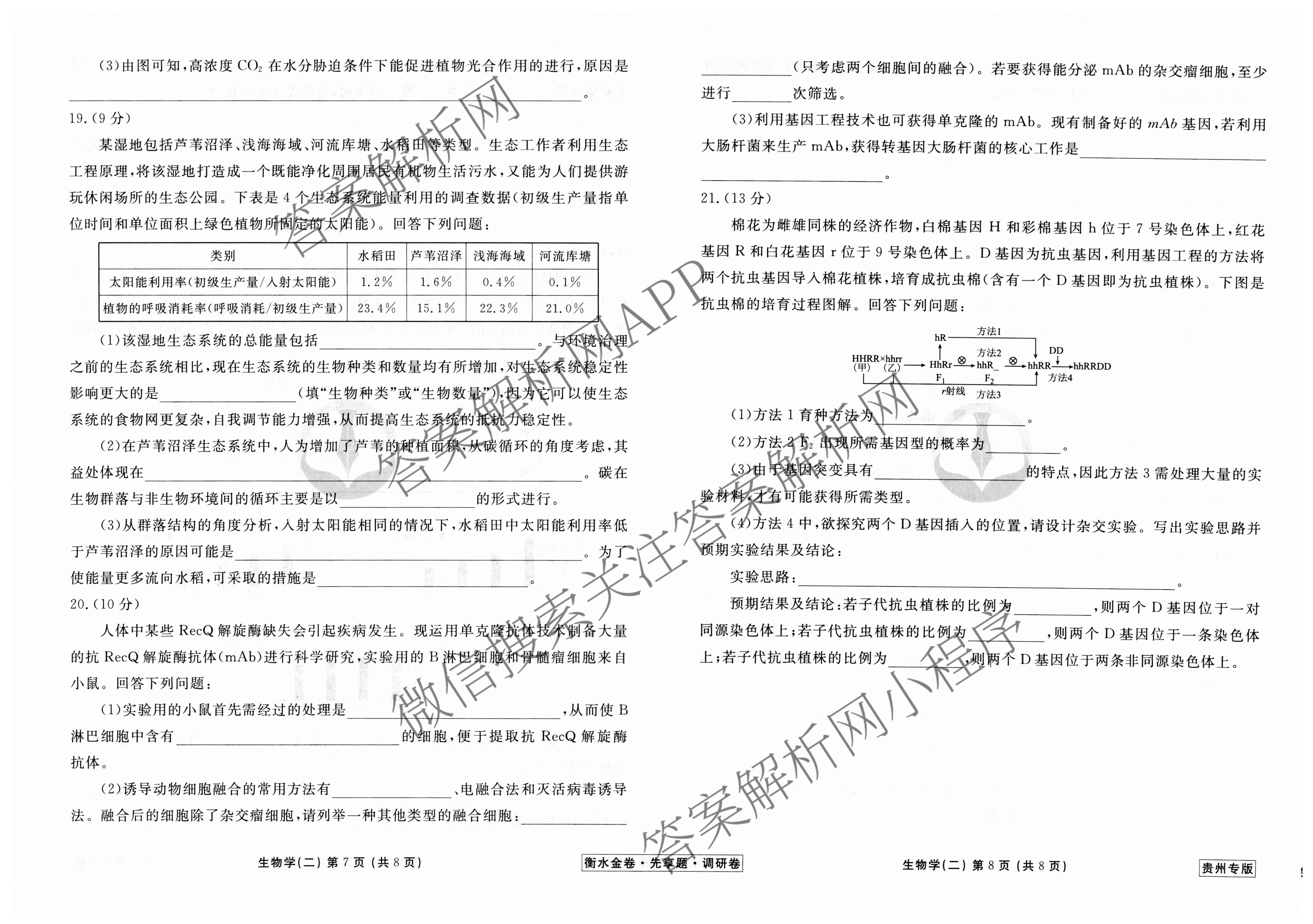 衡水金卷先享题·调研卷 2024年普通高中学业水平选择性考试模拟试题(二)2生物(贵州专版)试题,目前衡水金卷先享题答案网已经汇总了衡水金卷先享题·调研卷 2024年普通高中学业水平选择性考试模拟试题(二)2生物(贵州专版)试题的各科答案和试卷,获取更多衡水金卷先享题答案解析,请在关注本站。