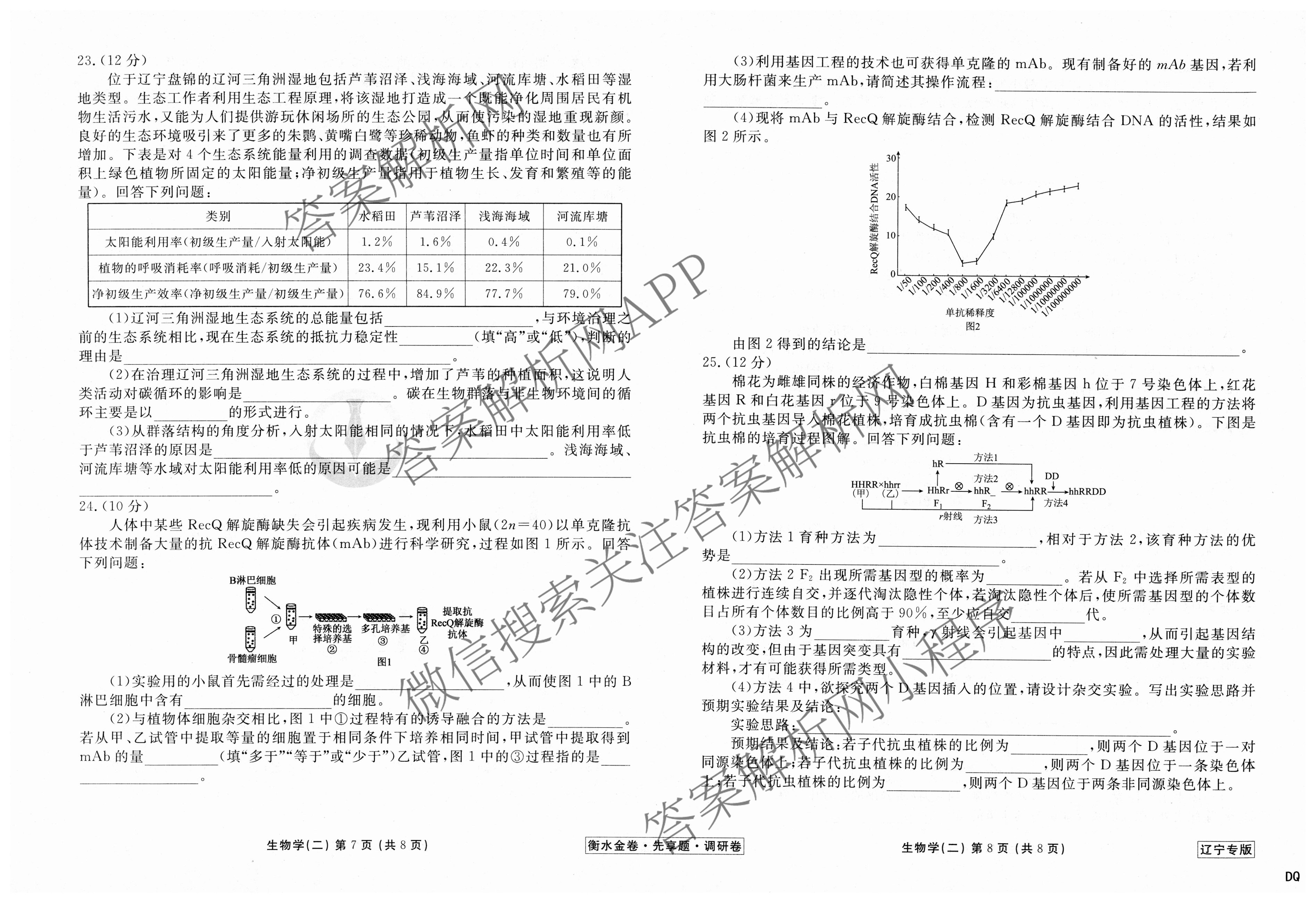 衡水金卷先享题·调研卷 2024年普通高中学业水平选择性考试模拟试题(二)2生物(辽宁专版)试题,目前衡水金卷先享题答案网已经汇总了衡水金卷先享题·调研卷 2024年普通高中学业水平选择性考试模拟试题(二)2生物(辽宁专版)试题的各科答案和试卷,获取更多衡水金卷先享题答案解析,请在关注本站。