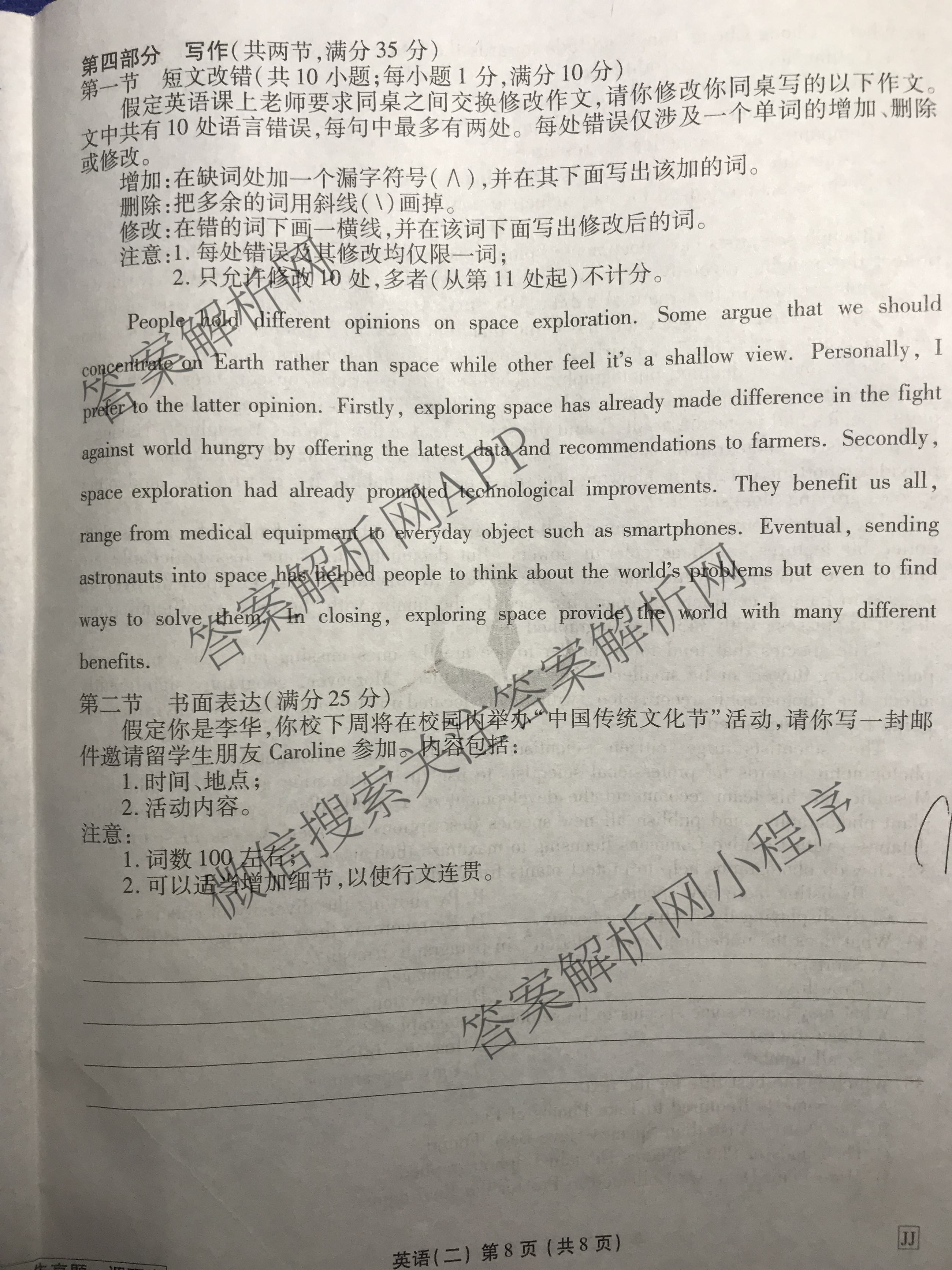 衡水金卷先享题·调研卷 2024年普通高等学校招生全国统一考试模拟(二)2英语(JJ)试题,目前衡水金卷先享题答案网已经汇总了衡水金卷先享题·调研卷 2024年普通高等学校招生全国统一考试模拟(二)2英语(JJ)试题的各科答案和试卷,获取更多衡水金卷先享题答案解析,请在关注本站。
