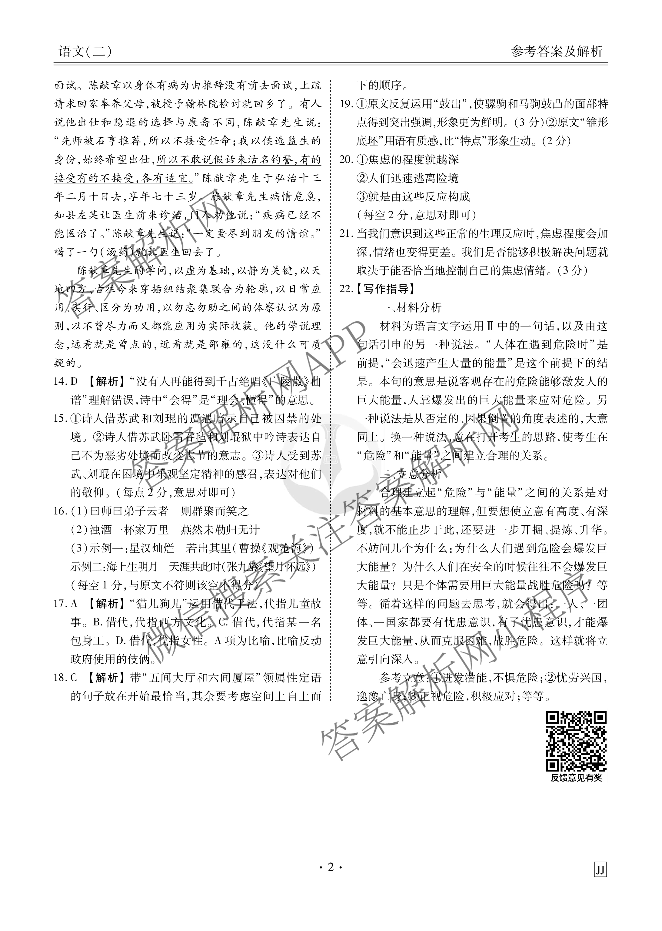 [高三](衡水金卷先享题)调研卷 2024年普通高等学校招生全国统一考试模拟(二)2语文(JJ)答案