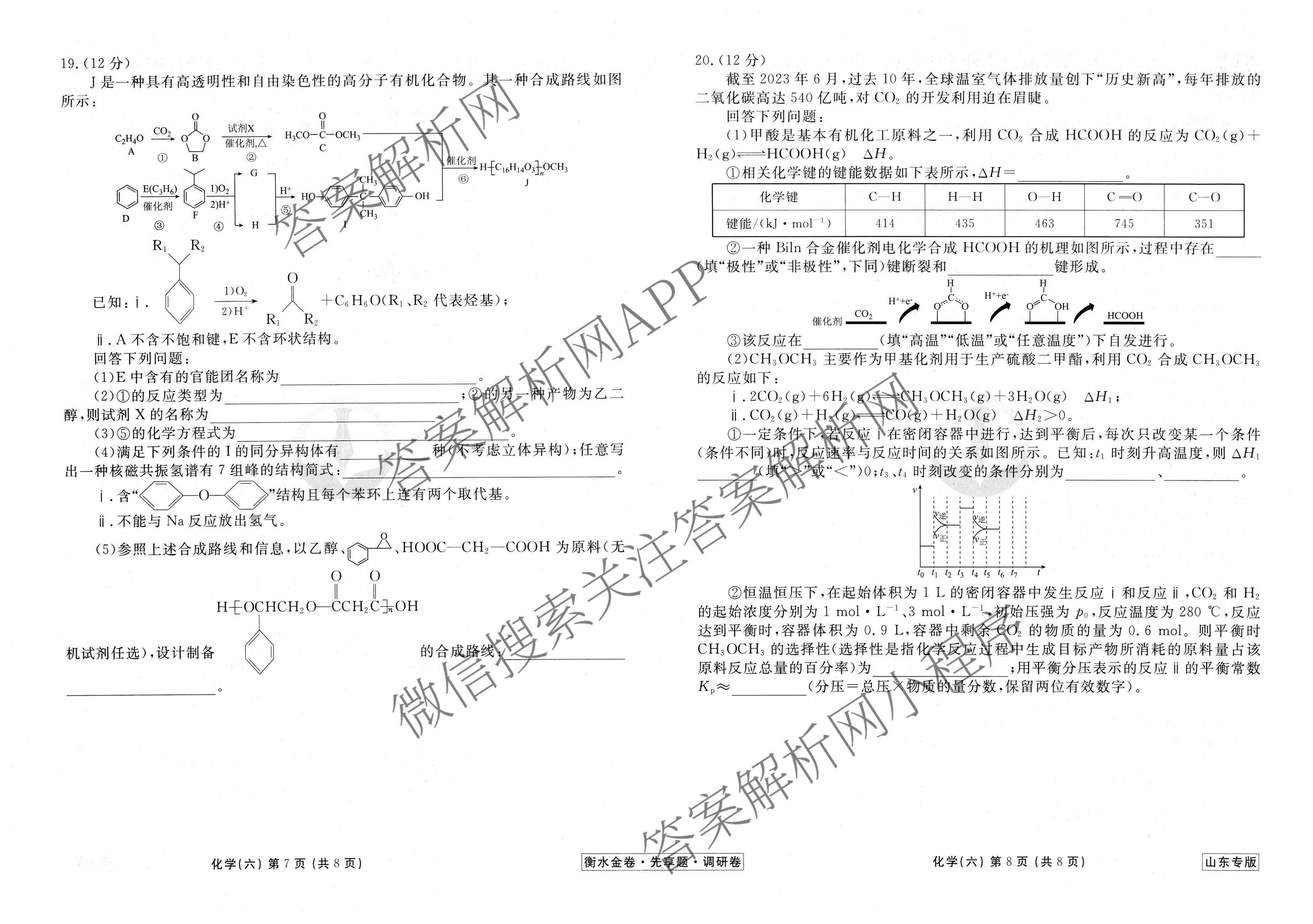 - (高三)衡水金卷先享题调研卷 2024年普通高中学业水平选择性考试模拟试题(六)6化学(山东专版)答案
