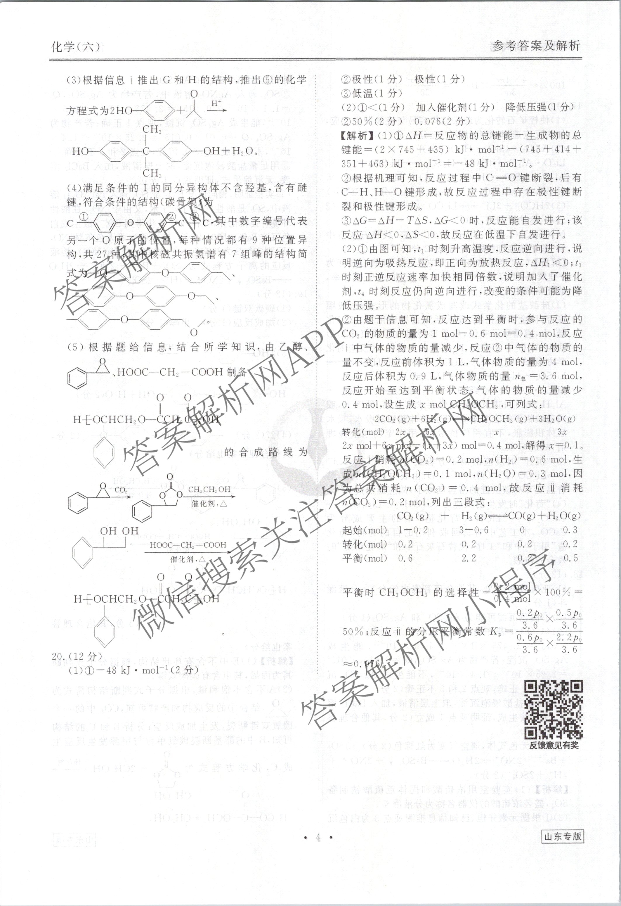 (高三)衡水金卷先享题调研卷 2024年普通高中学业水平选择性考试模拟试题(六)6化学(山东专版)答案
