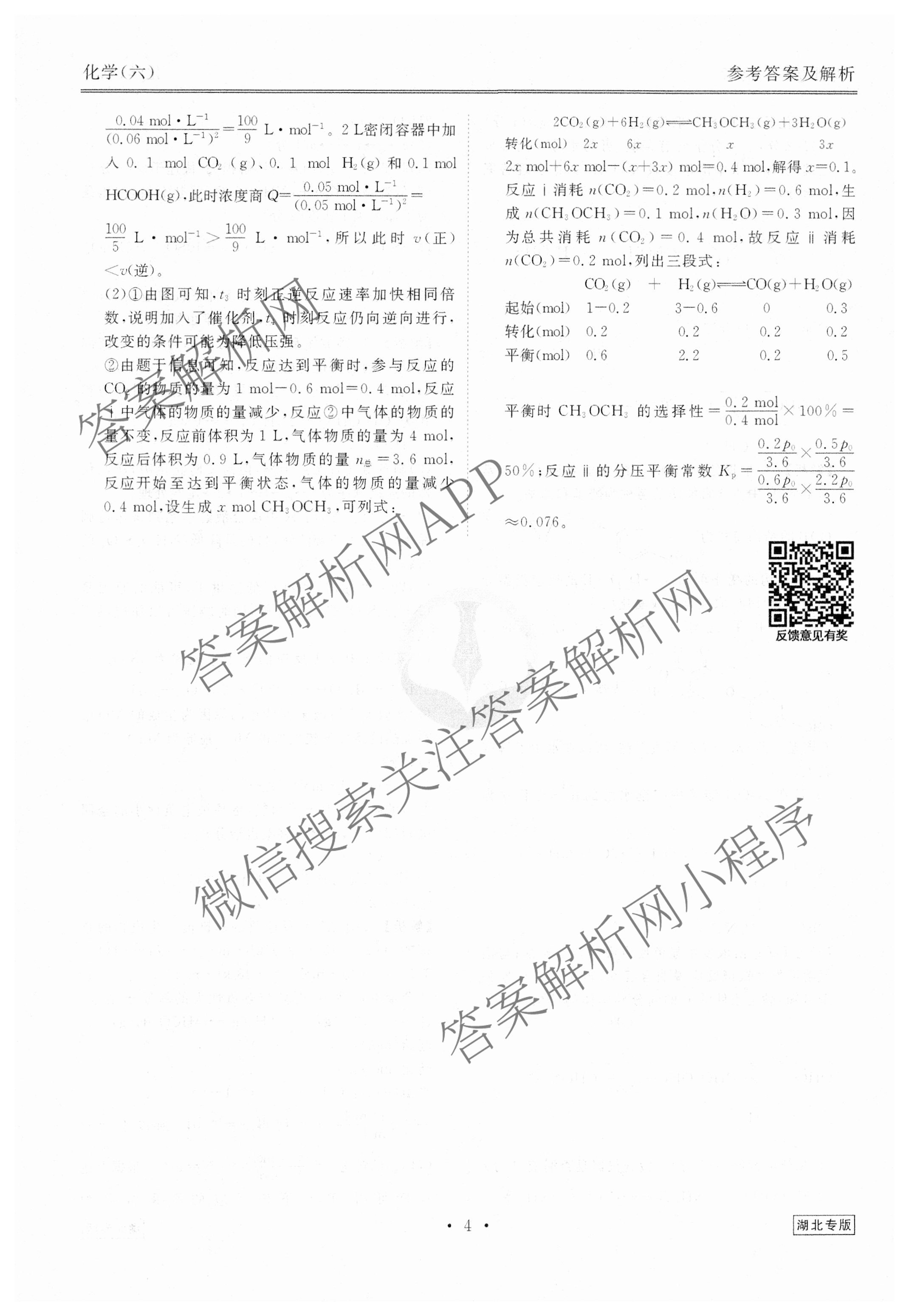 [高三]衡水金卷先享题·调研卷 2024年普通高中学业水平选择性考试模拟试题(六)6化学(湖北专版)答案