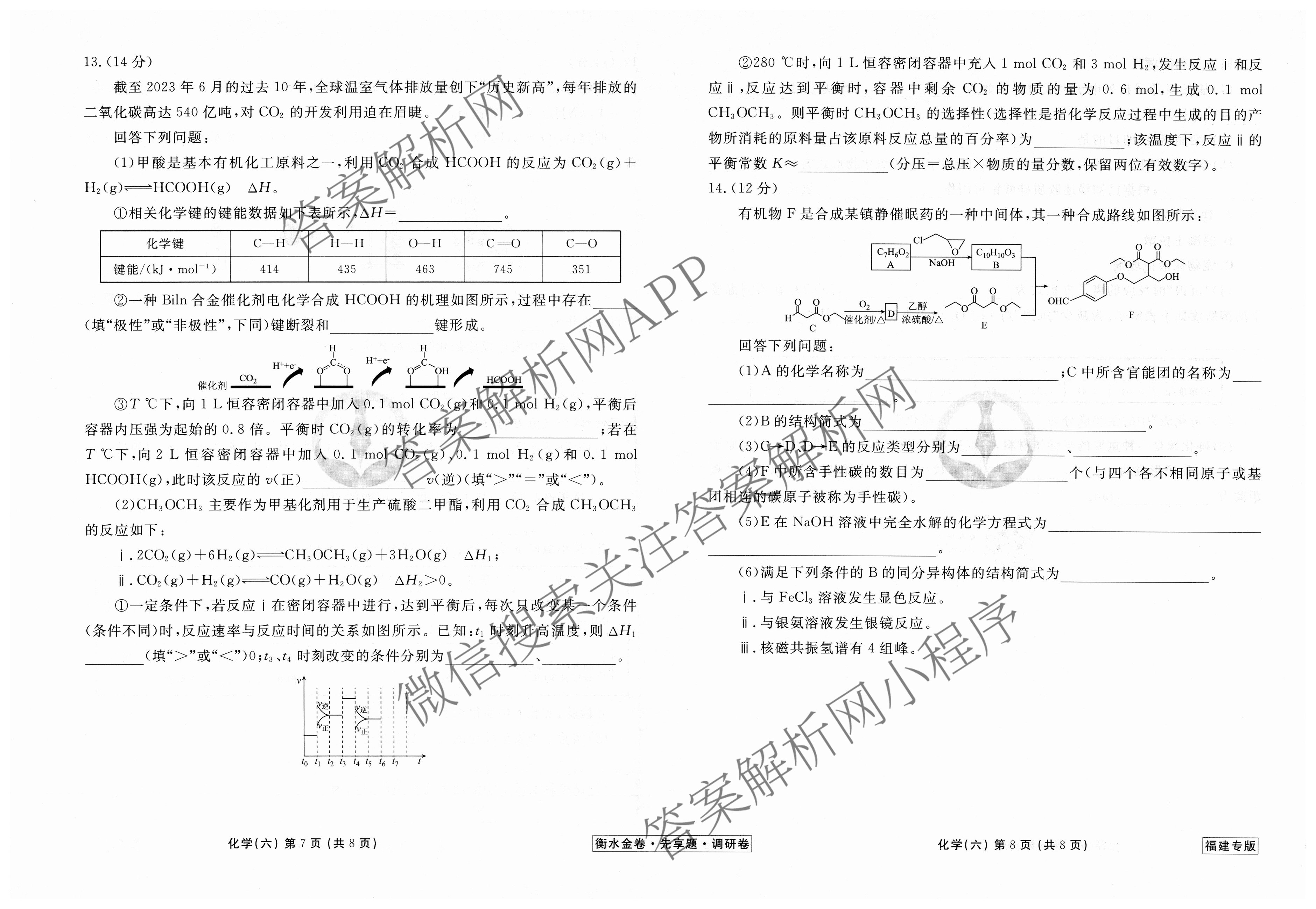 衡水金卷先享题·调研卷 2024年普通高中学业水平选择性考试模拟试题(六)6化学(福建专版)试题,目前衡水金卷先享题答案网已经汇总了衡水金卷先享题·调研卷 2024年普通高中学业水平选择性考试模拟试题(六)6化学(福建专版)试题的各科答案和试卷,获取更多衡水金卷先享题答案解析,请在关注本站。