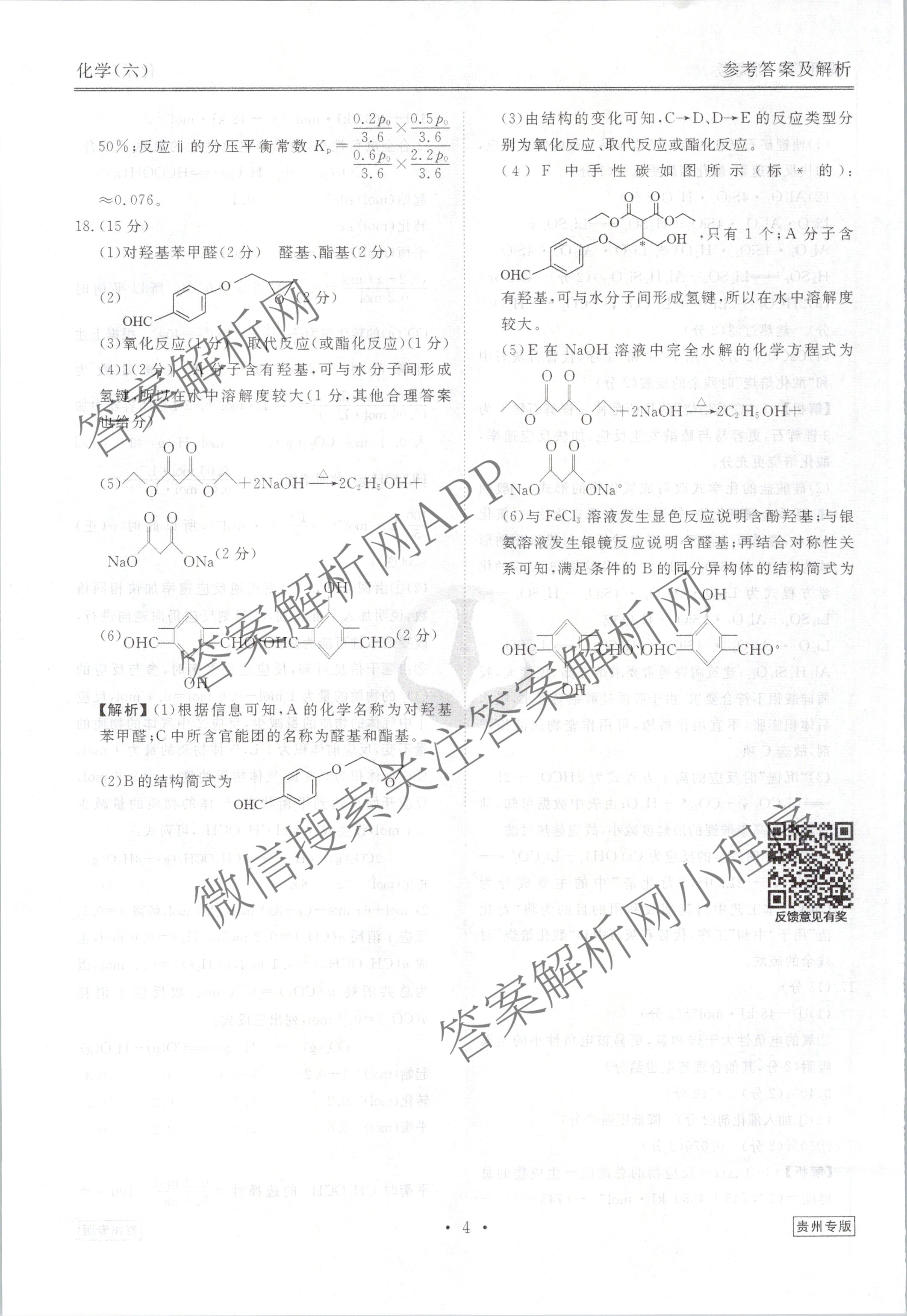 - [高三][衡水金卷先享题]·调研卷 2024年普通高中学业水平选择性考试模拟试题(六)6化学(贵州专版)答案