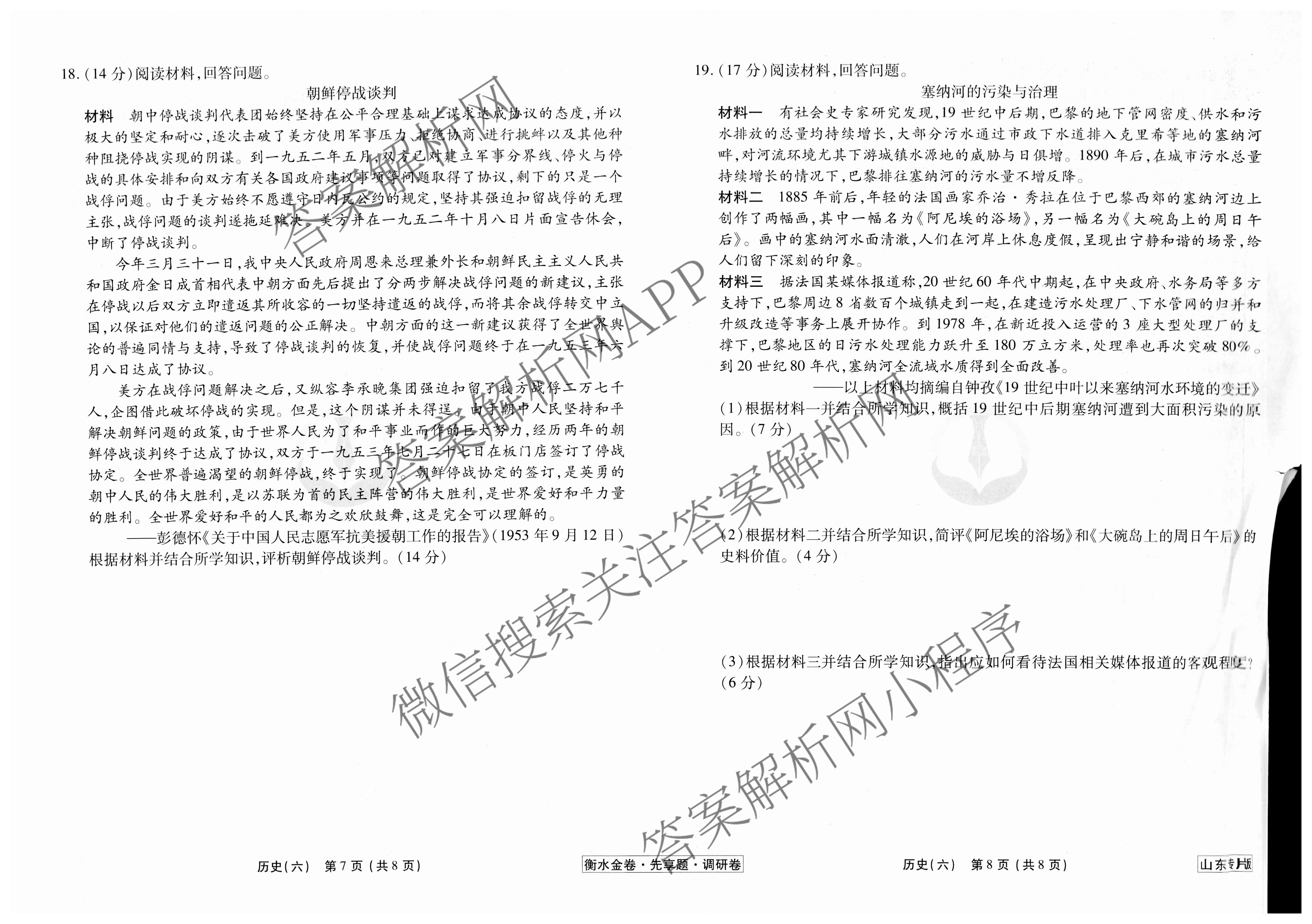 - (高三)(衡水金卷先享题)调研卷 2024年普通高中学业水平选择性考试模拟试题(六)6历史(山东专版)答案
