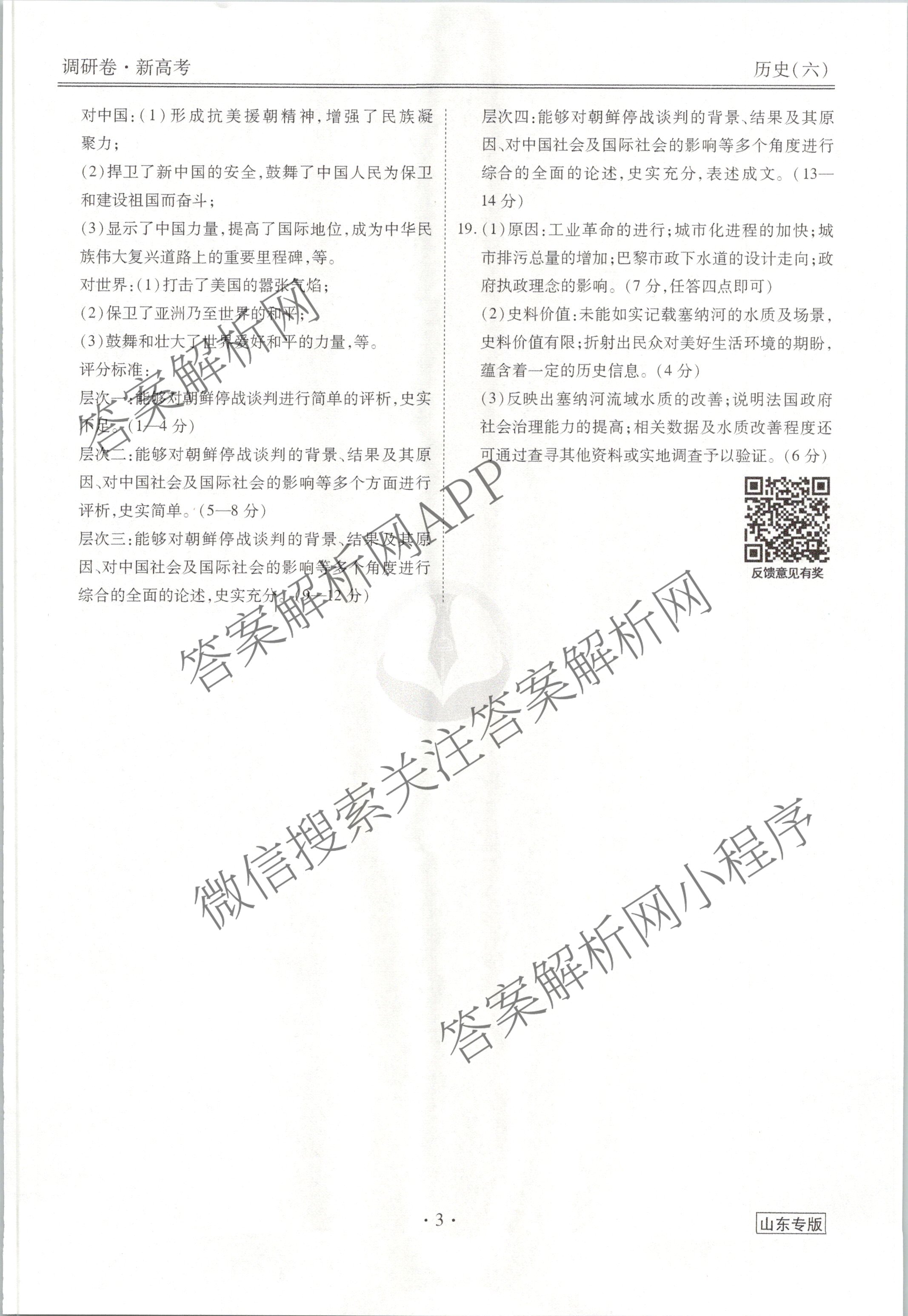 (高三)(衡水金卷先享题)调研卷 2024年普通高中学业水平选择性考试模拟试题(六)6历史(山东专版)答案